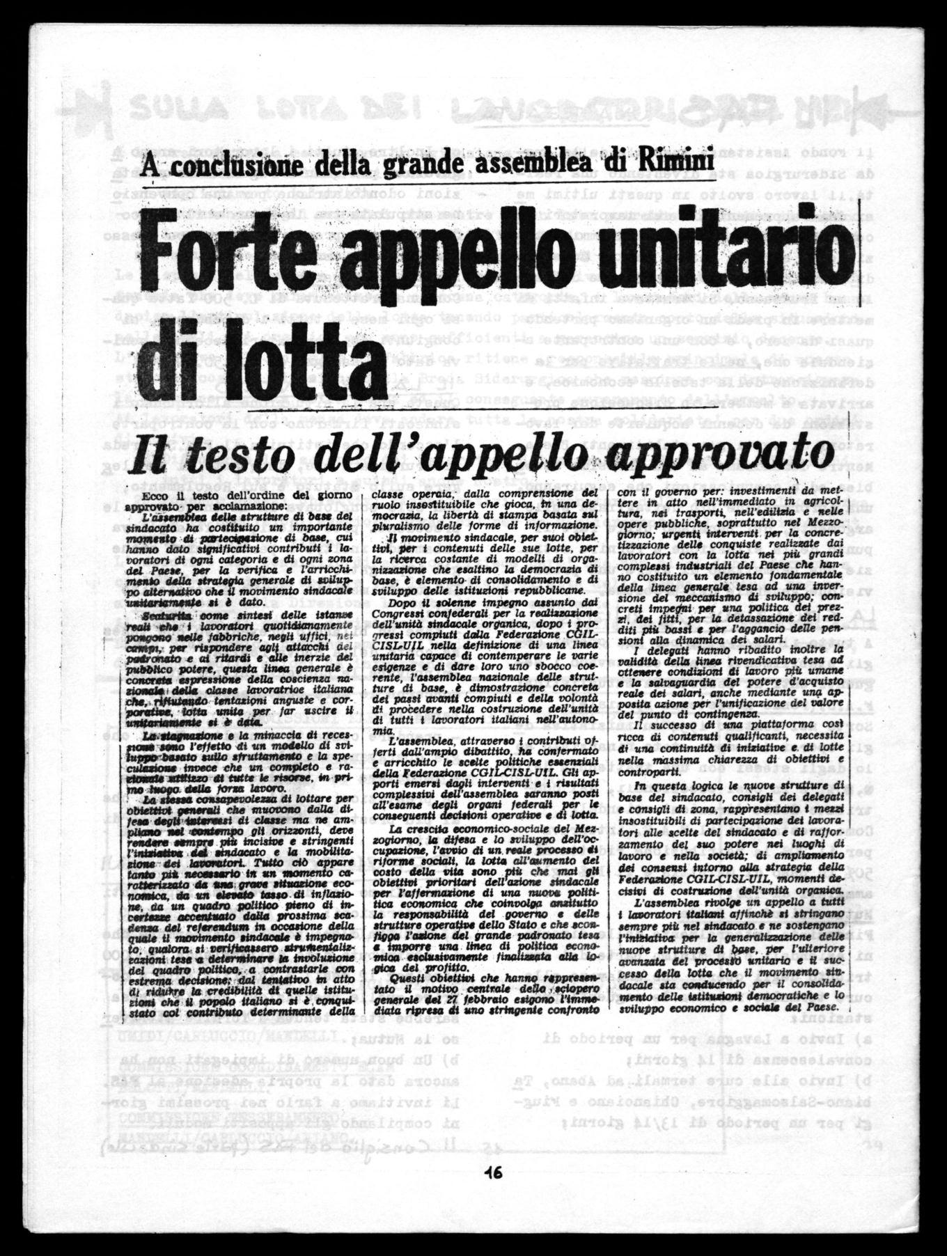 L'assemblea rivolge un appello a tutti i lavoratori italiani affinchè si stringano • sempre più nel sindacato e ne sostengano l'iniziativa per la generalizzazione delle nuove strutture di base, per l'ulteriore avanzata del procesiti unitaria e d successo della lotta che U movimento MIdOralP sta conducendo per il consolidamento delle istituzioni democratiche e lo sviluppo economico e sociale del Paese.