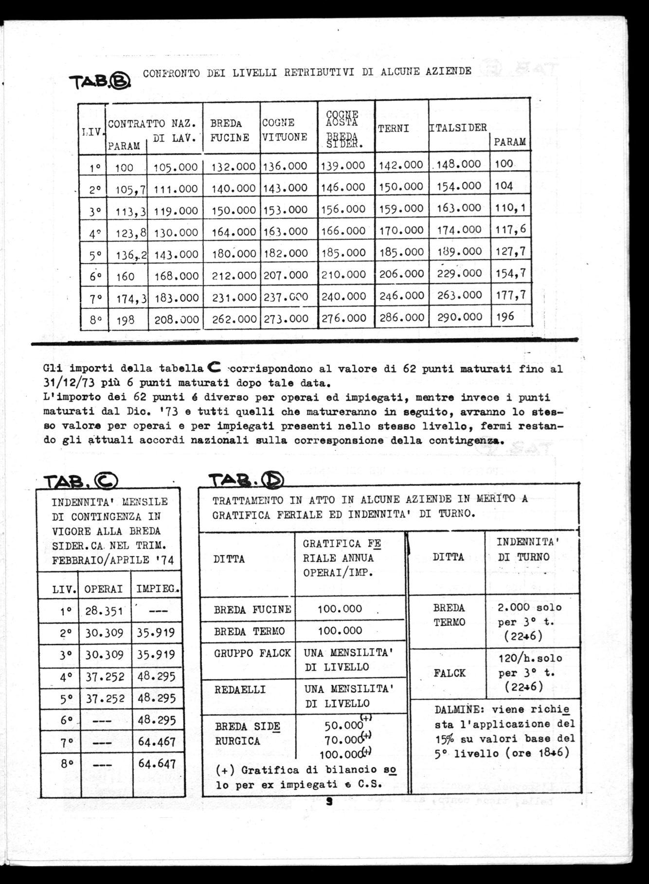 L'importo dei 62 punti 6 diverso per operai ed impiegati, mentre invece i punti maturati dal Dic. '73 e tutti quelli che matureranno in seguito, avranno lo stesso valore per operai e per impiegati presenti nello stesso livello, fermi restando gli attuali accordi nazionali sulla corresponsione della contingenza.