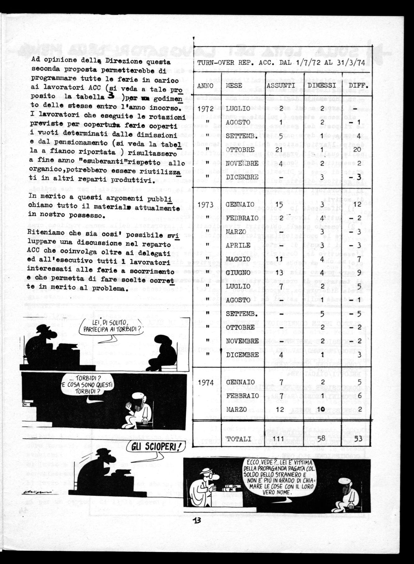 Riteniamo che sia oosie possibile svi luppare una discussione nel reparto ACC che ooinvolga oltre ai delegati ed all'esecutivo tutti i lavoratori interessati alle ferie a scorrimento e che permetta di fare scelte corret te in merito al problema.