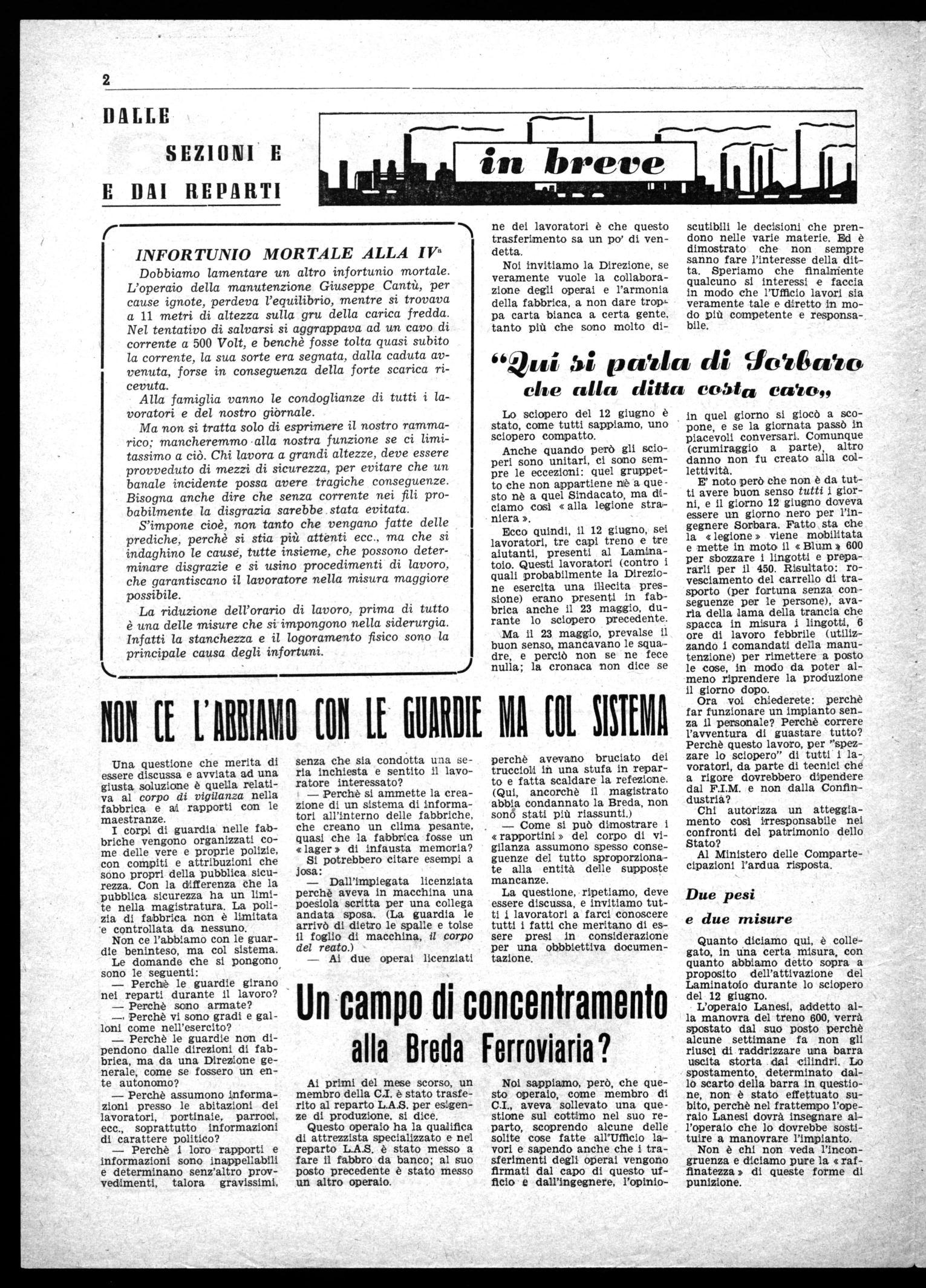 Per quanto ci riguarda, come lavoratori della Breda, chiediamo che le condizioni di vita della fabbrica siano cambiate, si rispetti la libertà e si diano salari adeguati e corrispondenti al maggiore rendimento.