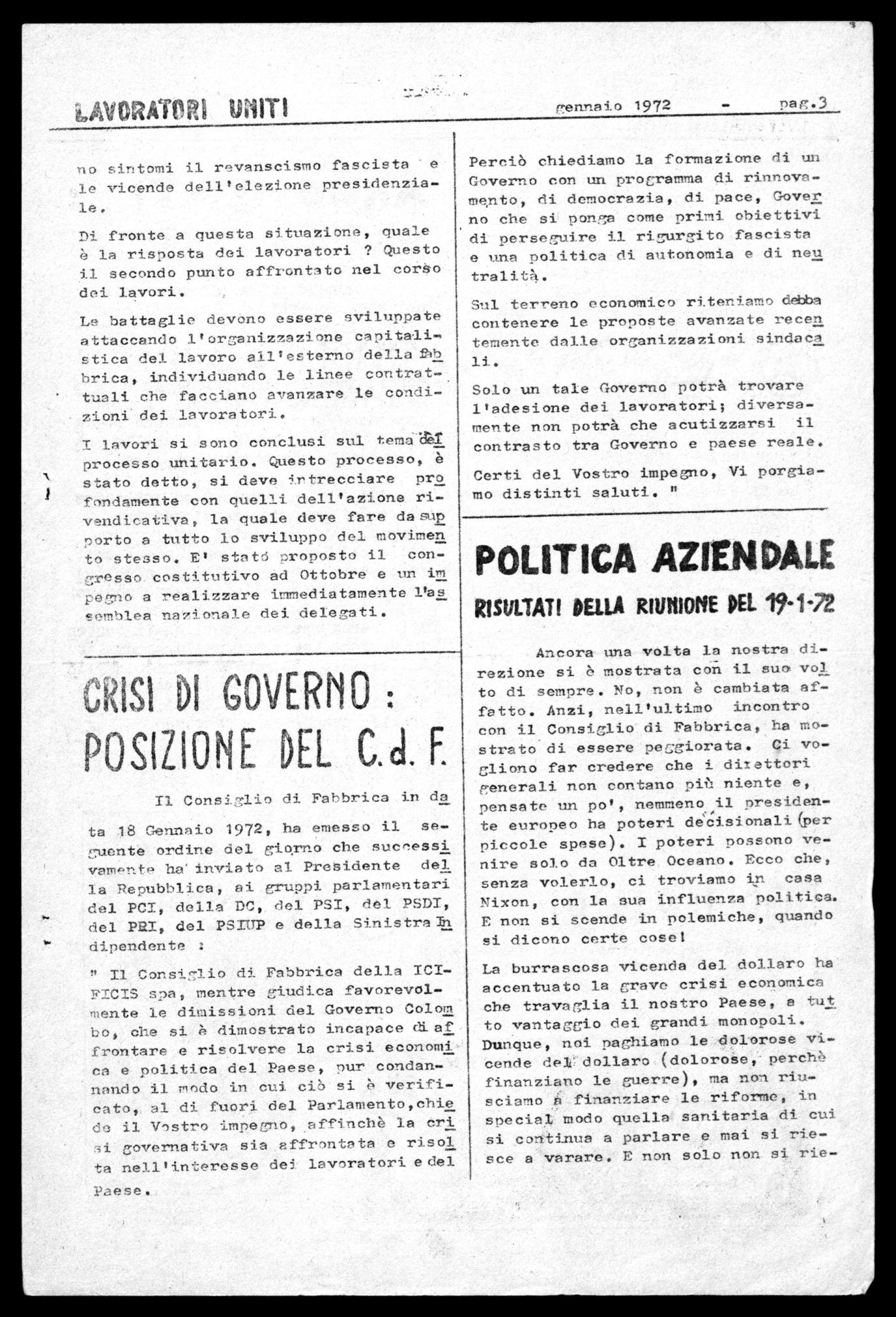 L'iniziativa del Consiglio di Fabbrica della ICIFICIS di distribuì re un giornalino con una certa perio dicità, si è resa necessaria, premerlo nel momento in cui il padronato e il governo si fanno forti per il fatto di possedere il monopolio dei mezzi di informazione.