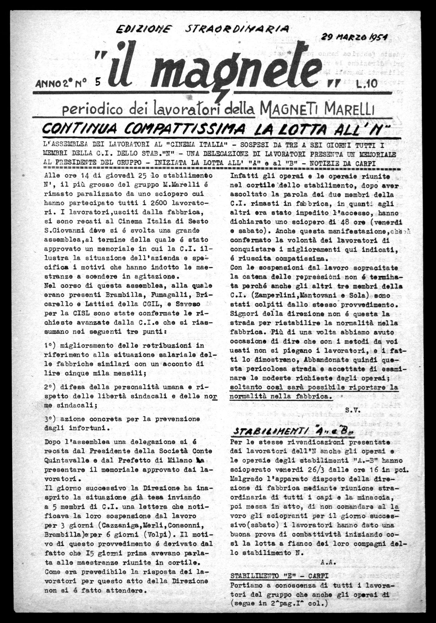periodico dei lavorarori della MAGNETI MARElli