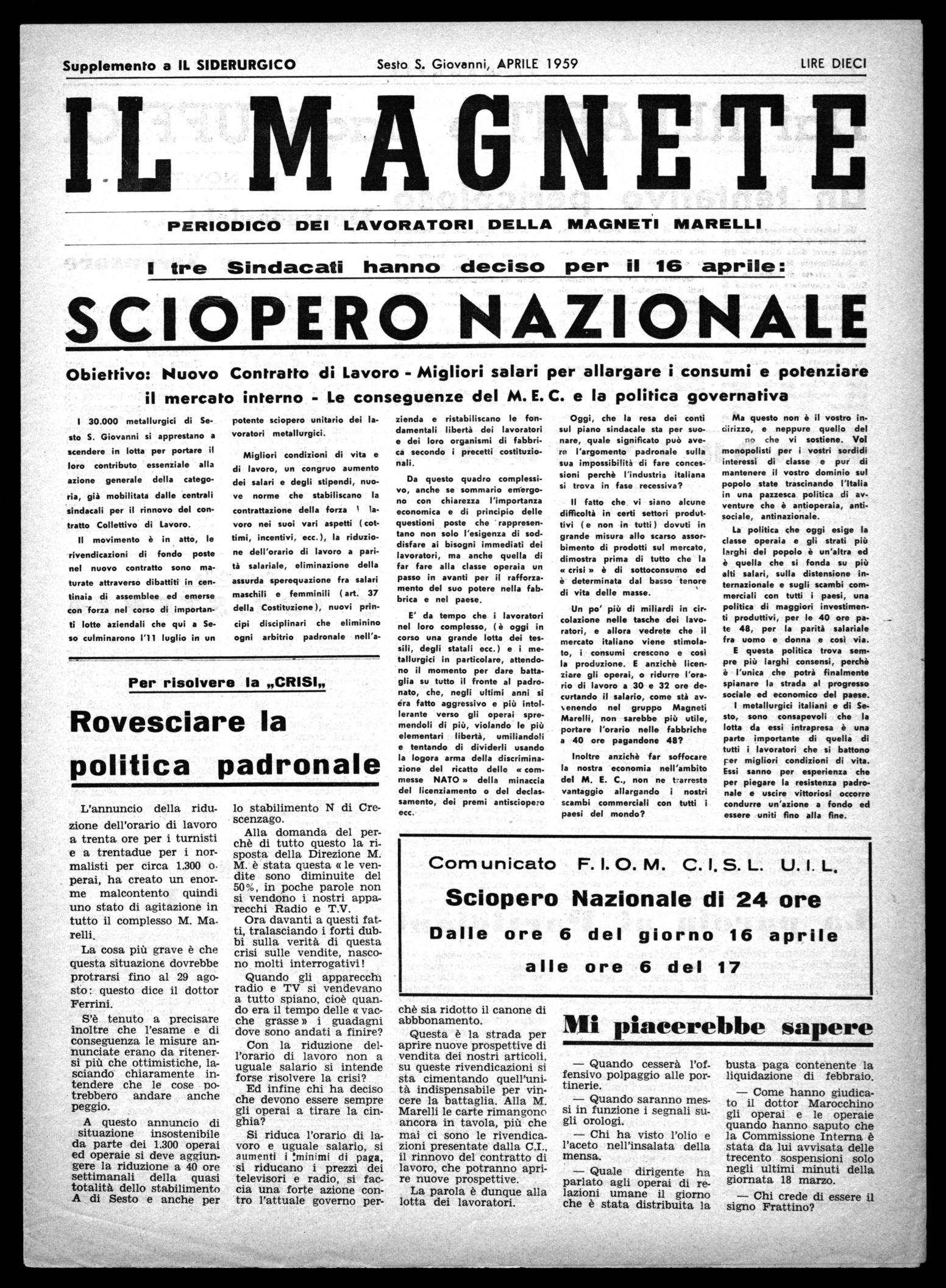 PERIODICO DEI LAVORATORI DELLA MAGNETI MARELLIl tre Sindacati hanno deciso per il 16 aprile: