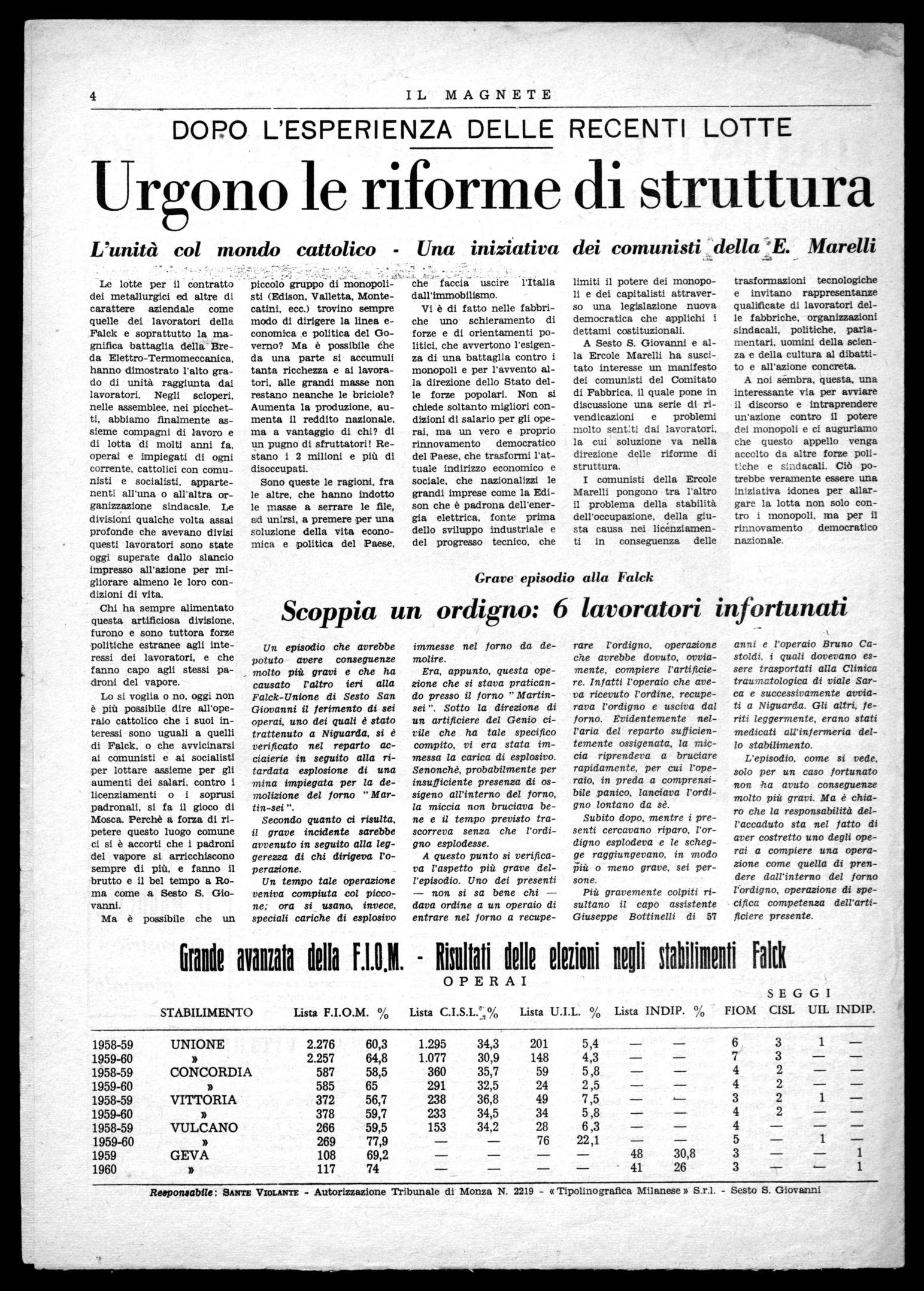 A Sesto S. Giovanni e alla Ercole Marelli ha suscitato interesse un manifesto dei comunisti del Comitato di Fabbrica, il quale pone in discussione una serie di rivendicazioni e problemi molto sentiti dai lavoratori, la cui soluzione va nella direzione delle riforme di struttura.
