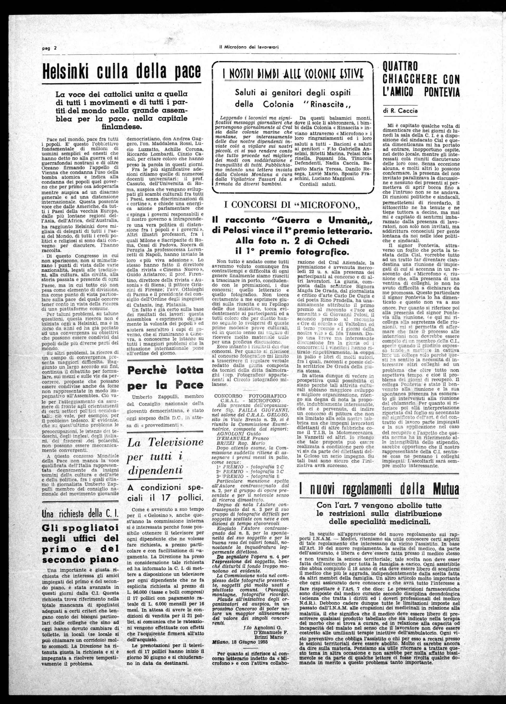 Pace nel mondo, pace fra tutti i popoli. E' questo l'obbiettivo fondamentale di milioni di uomini semplici ed onesti che hanno detto no alla guerra ed ai guerrafondai nostrani e di oltre Oceano firmando l'appello di Vienna che condanna l'uso della bomba atomica e indica alla condanna dei popoli quel governo che per primo osa adoperarla mentre auspica ad un disarmo generale e ad una distensione internazionale. Questa possente voce che dalle Americhe, da tutti i Paesi della vecchia Europa, dalle più lontane regioni dell'Asia, dell'Africa, dell'Australia, ha raggiunto Helsinki dove migliaia di delegati di tutti i Paesi del Mondo, di tutti i credi politici e religiosi si sono dati convegno per discutere, l'hanno raccolta.