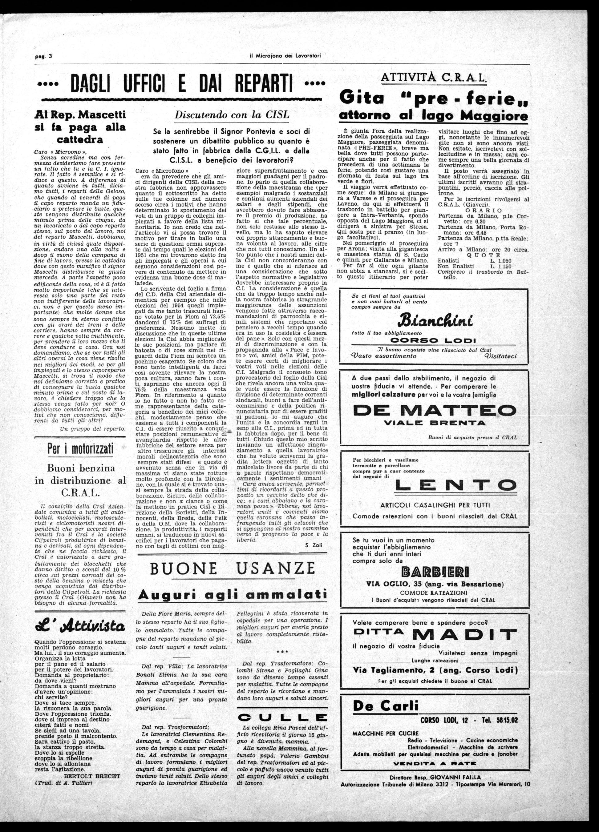 Direttore Resp. GIOVANNI FALLA Autorizzazione Tribunale di Milano 3 312 - Tipostempa Via Muratori, 10 Pa9 3 il Microfono idei lavoratori ATTIVITA C. R. A. L.