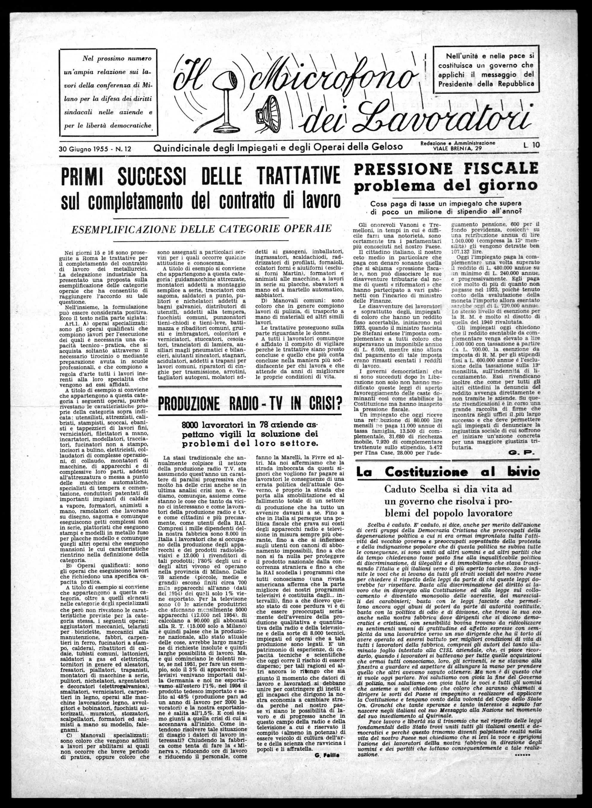 30 Giugno 1955 - N. 12 Quindicinale degli Impiegati e degli Operai della Geloso