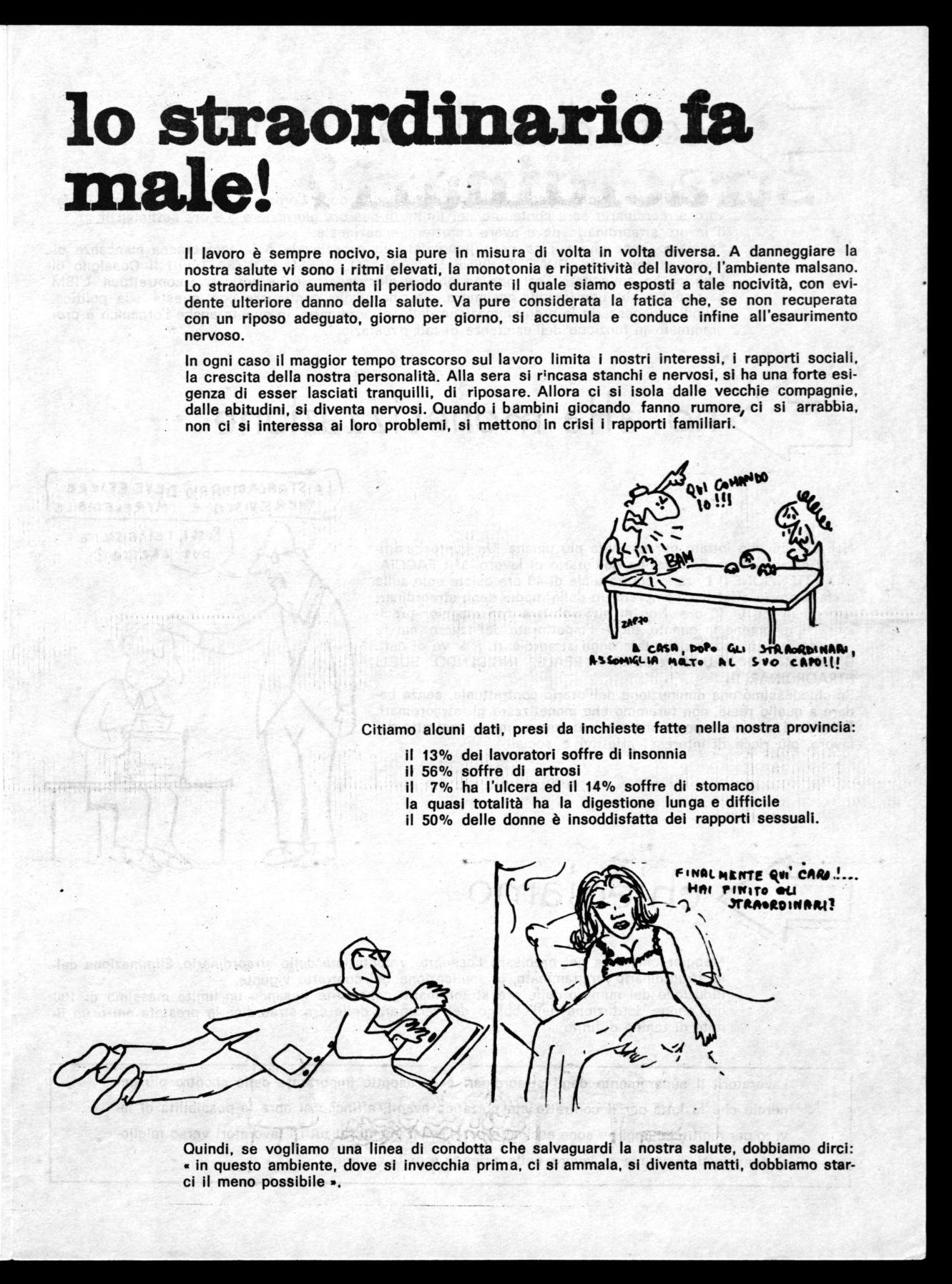 Lo straordinario impedisce ai lavoratori di fare il confronto fra salario reale ed aumento del costo della vita, e quindi di prendere chiaramente coscienza della necessità di lottare per difendere il livello retributivo. 1000 Li«