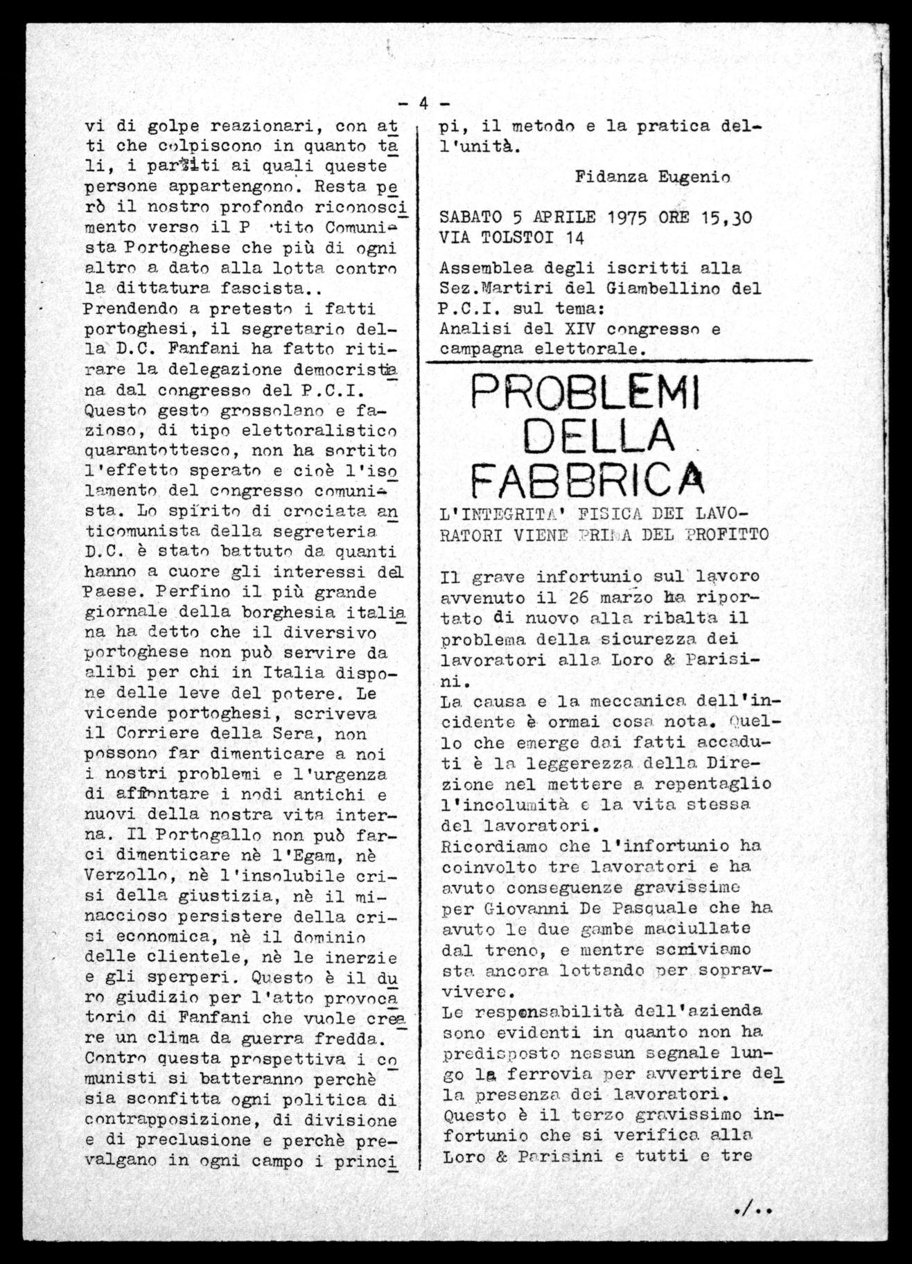 Giornale di fabbrica a cura della C(5t11-11a del P.C.I. " Costa Zavaglia - ,Loro & ParitIn5 -