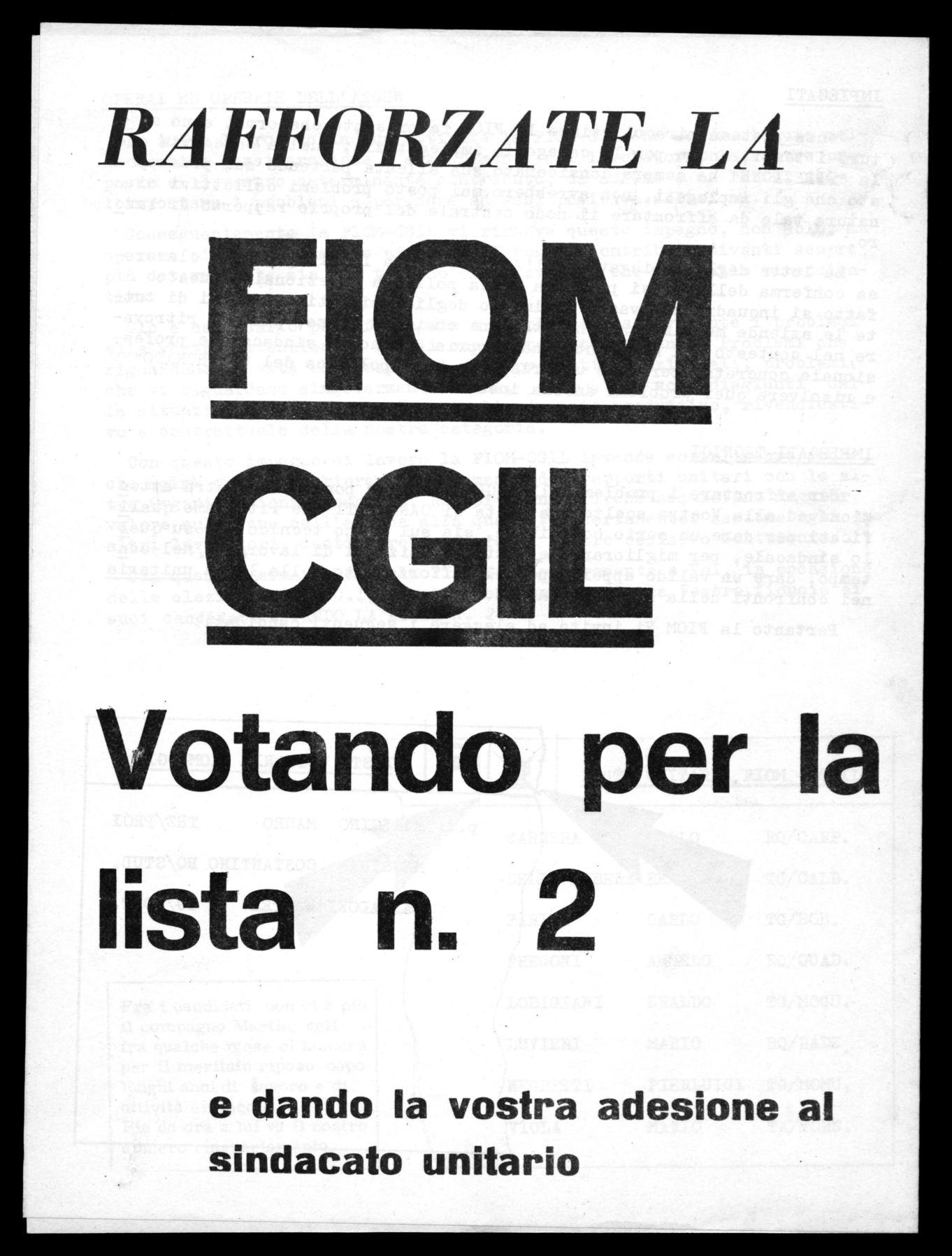 Con questa ferma volontà la FIOM-CGIL si presenta a Voi, in occasione delle elezioni della C.I., certa che concederete la Vostra fiducia ai suoi candidati VOTANDO LA LISTA N. 2.