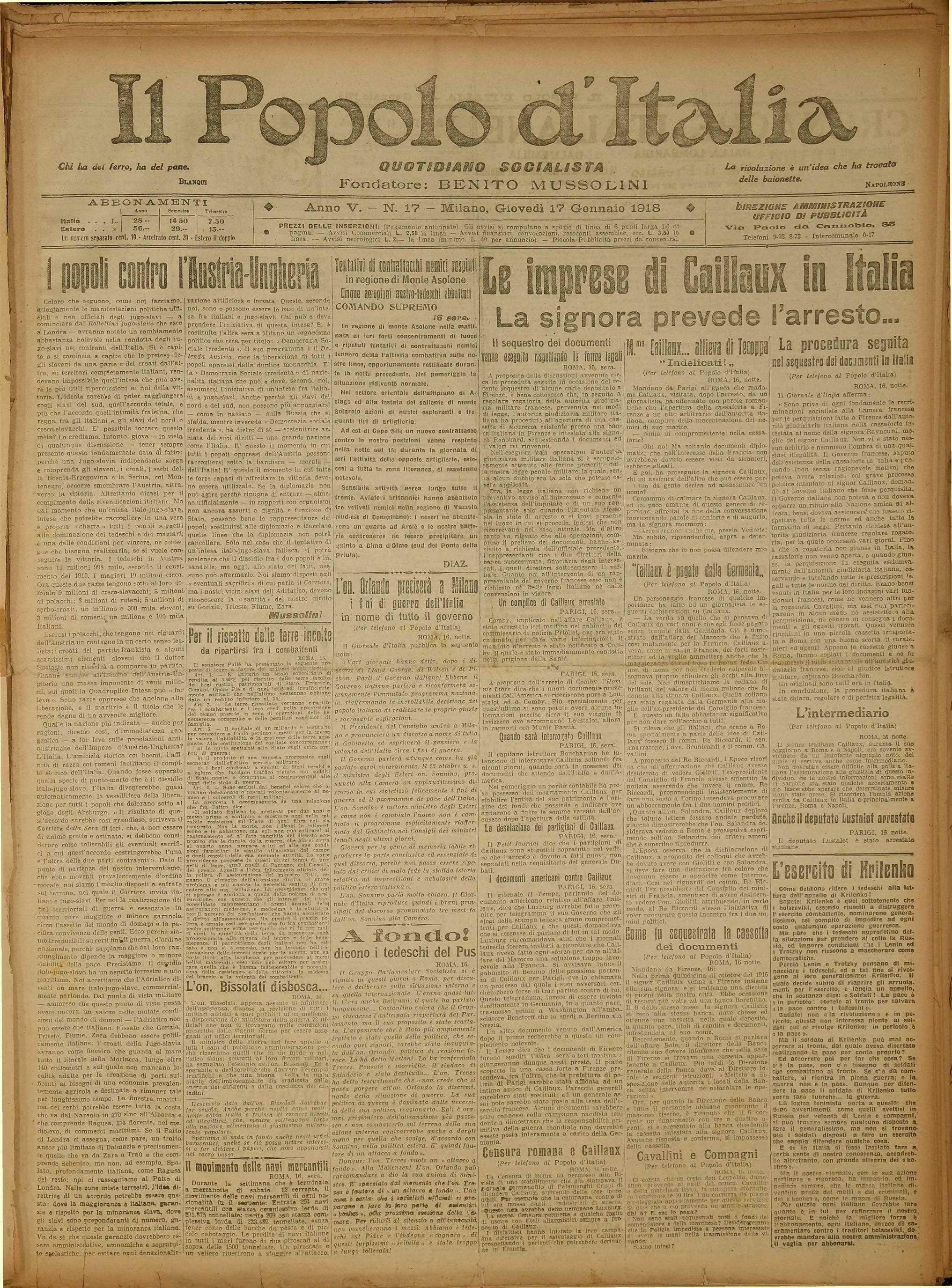 Popolo Italia 1918 _01 gennaio_16-22 by fondazioneisec - Issuu