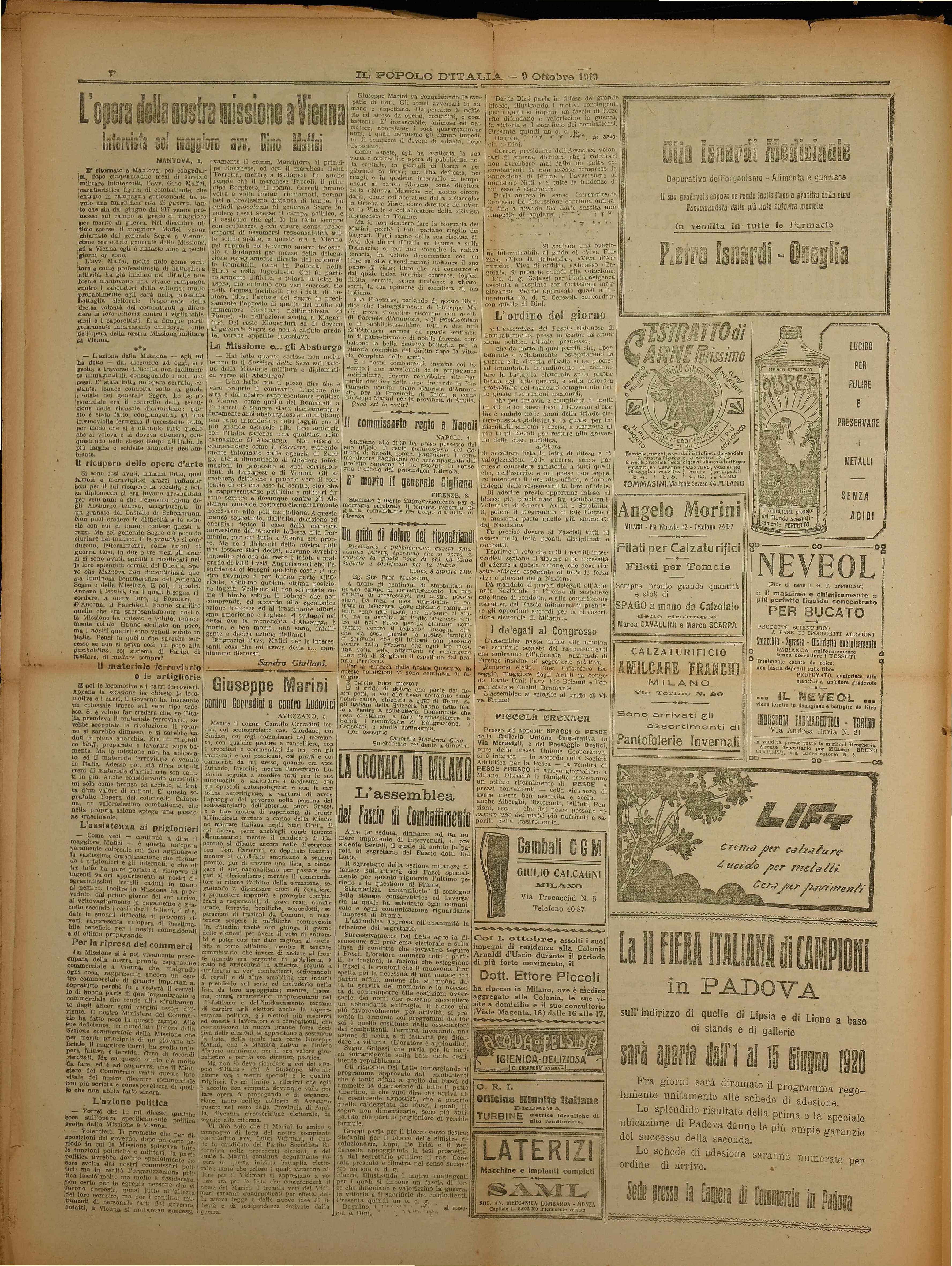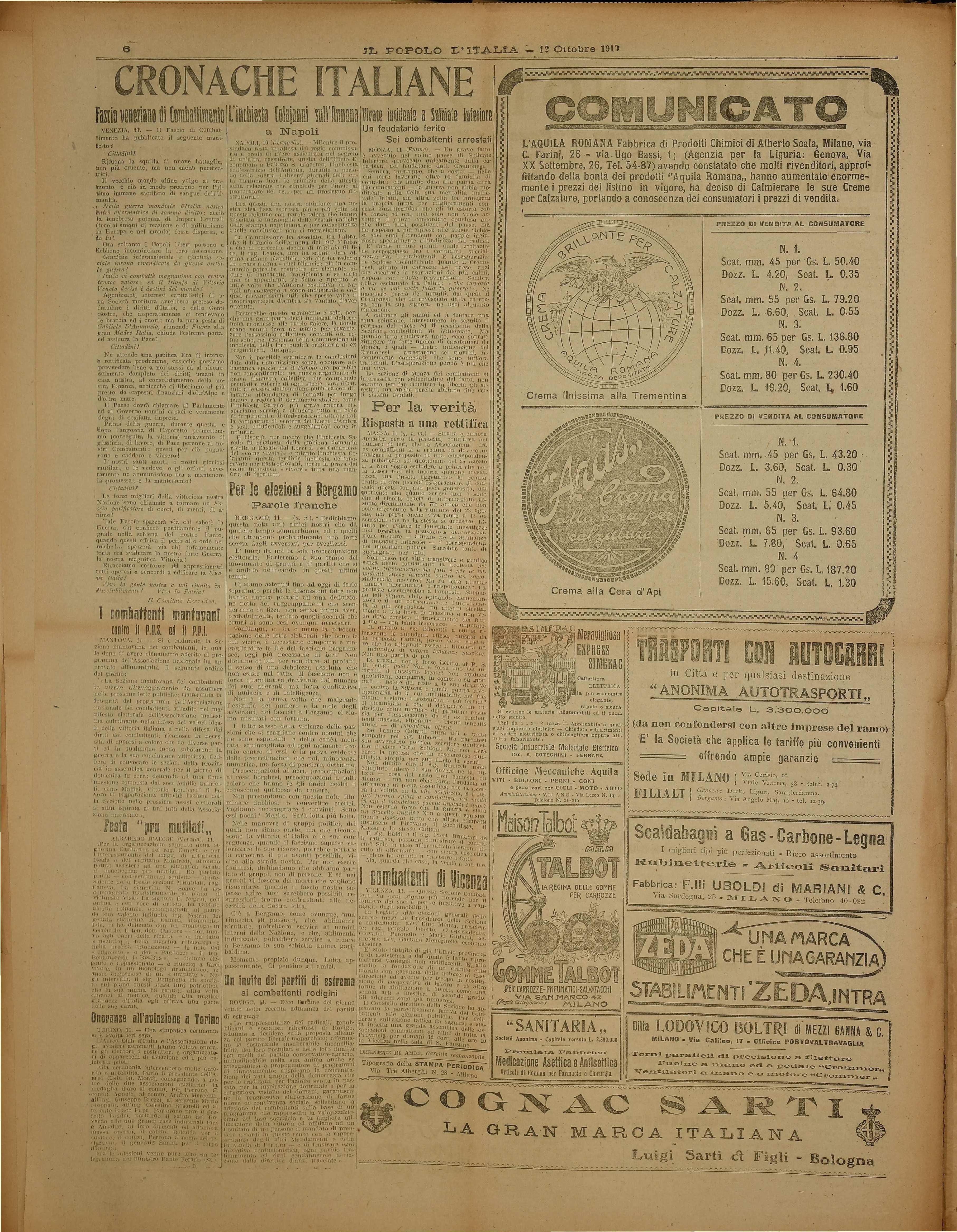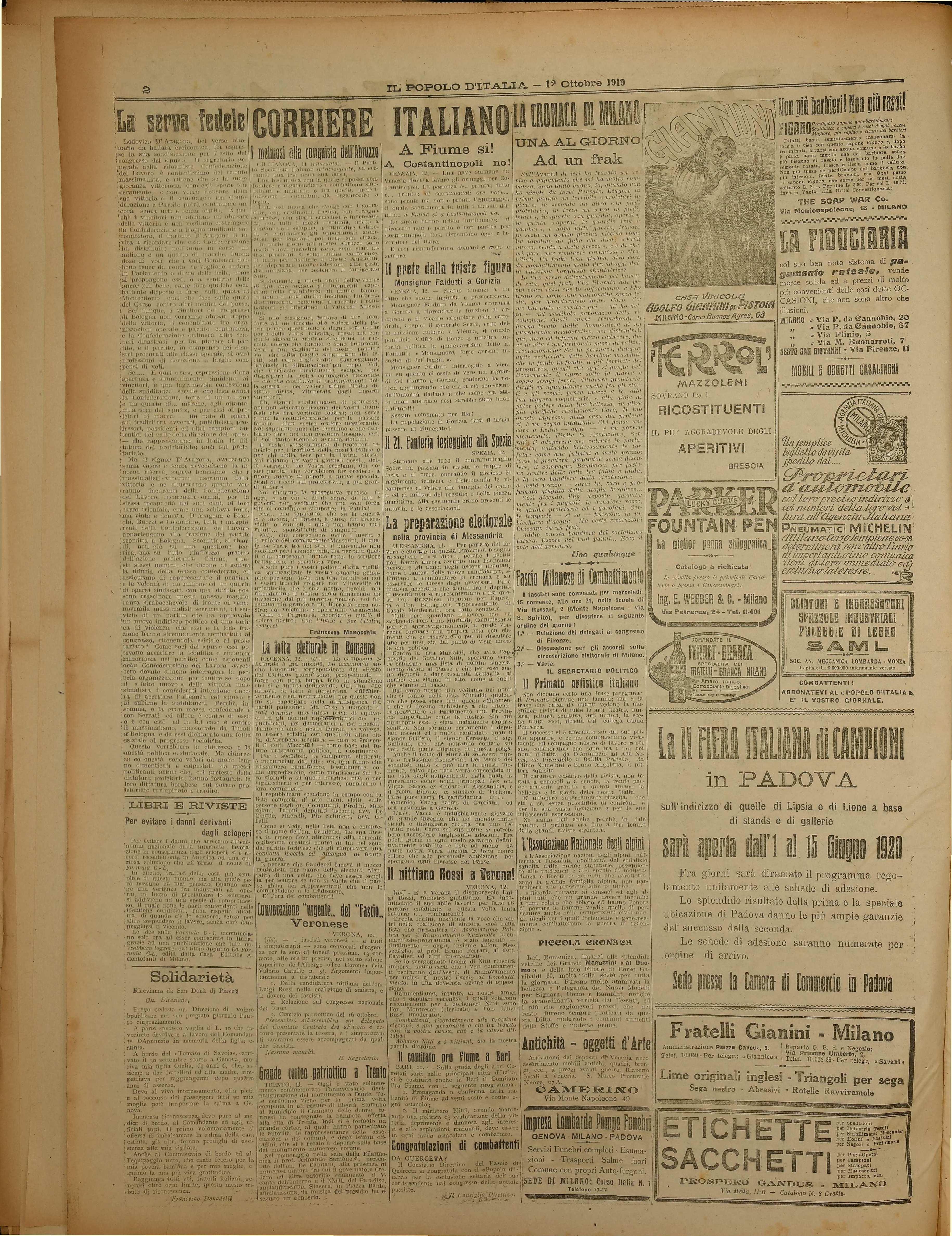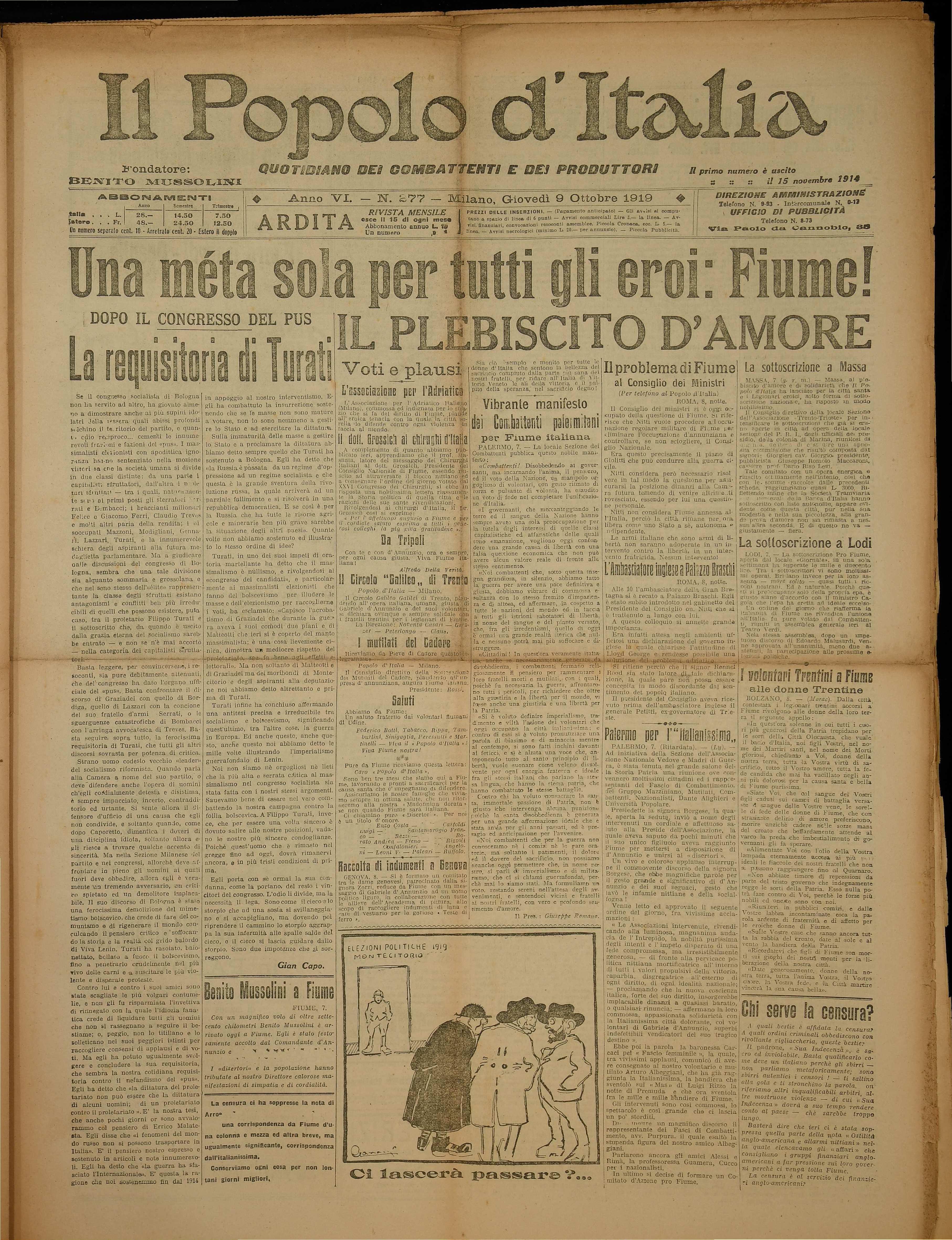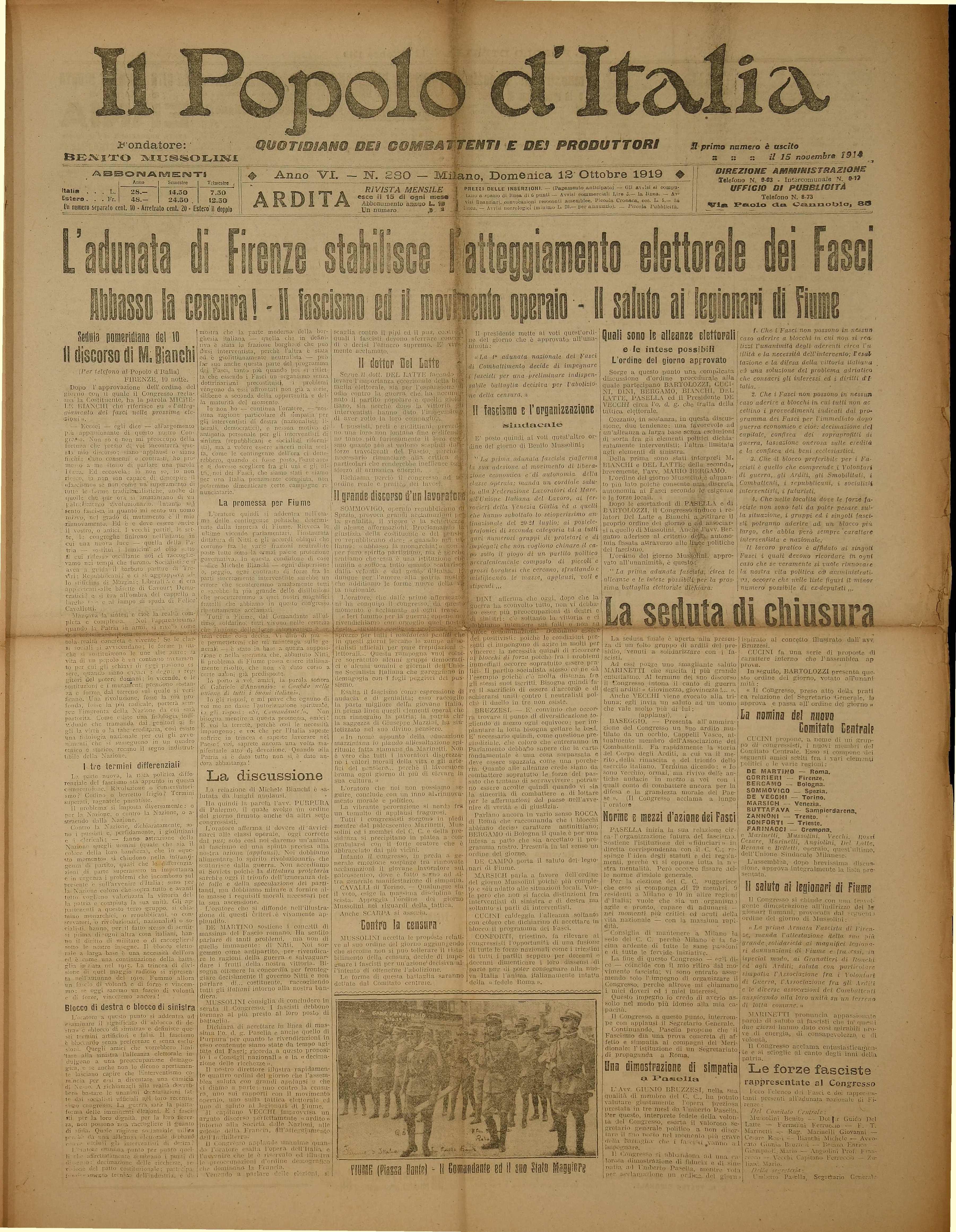 elettorale, doe crano manti; 1i fiducia alla propria organizzazioni che si -preajon: difese le conquist tangibili valurare ed isterilire ge npiulti dal popolo d'Italia».