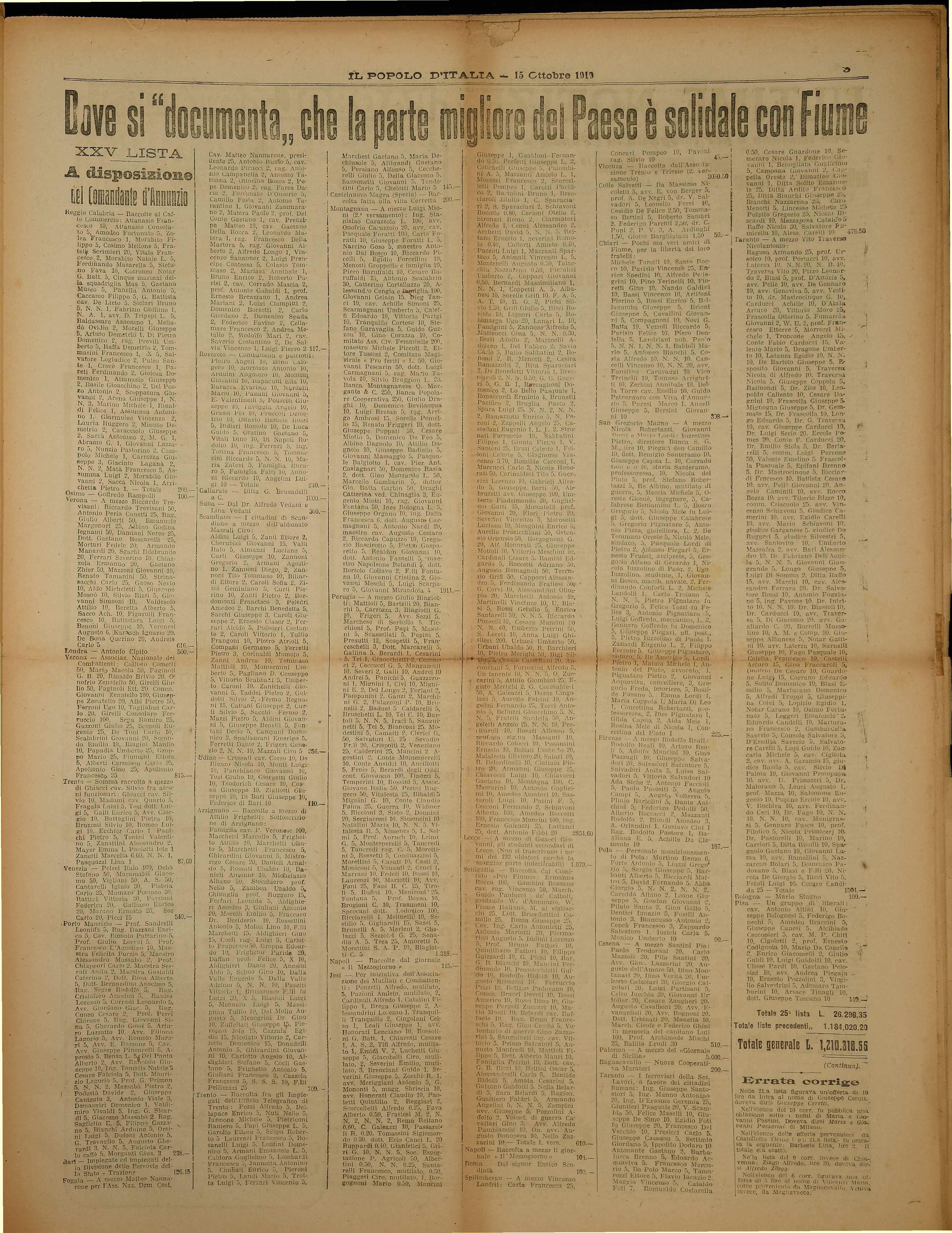 iL ii E U di Ttali. confer vulL tatotol ivo pere ento a col daul popolo t tutta di ded!; \Vilsun ed Presi- ricano Uva impolente di