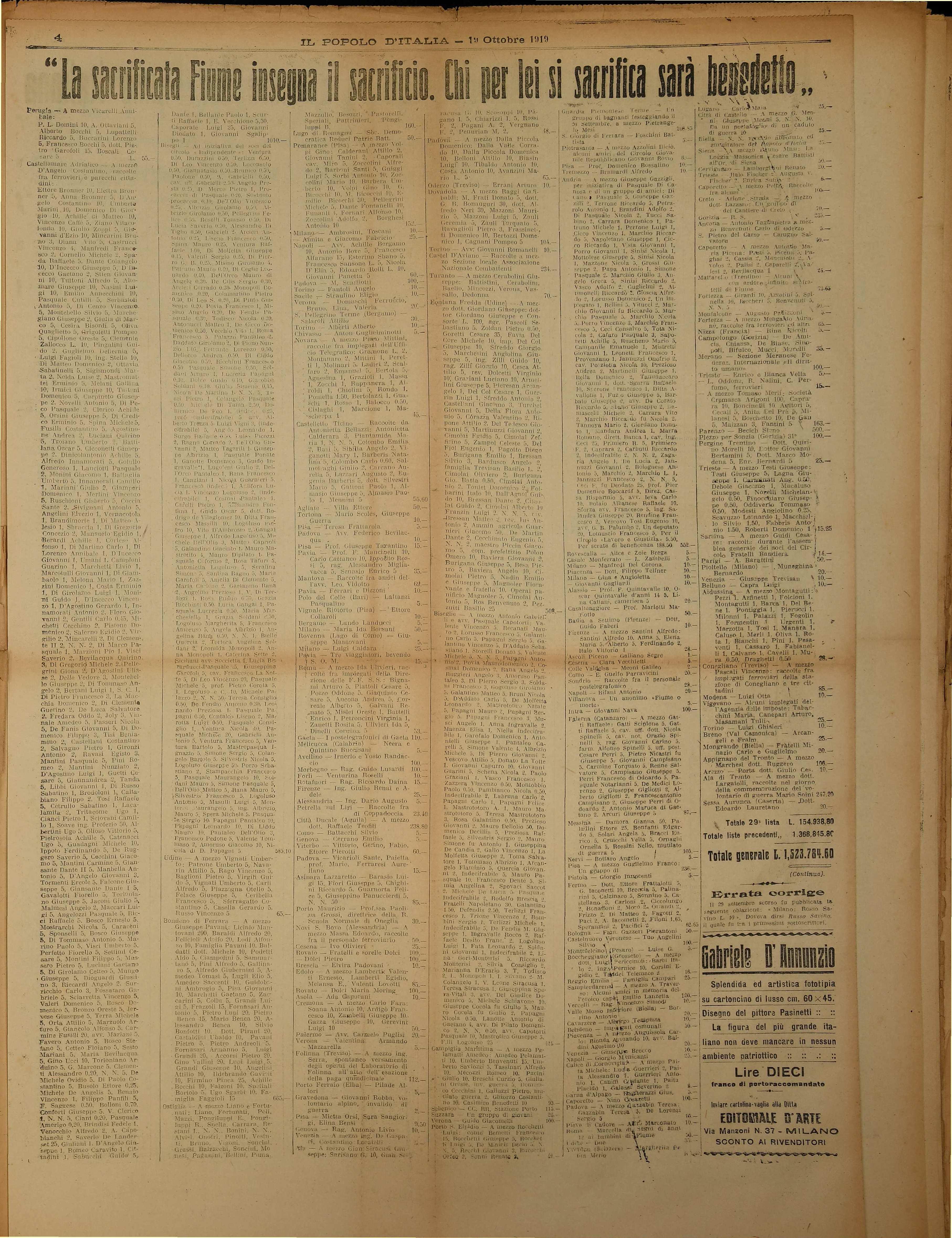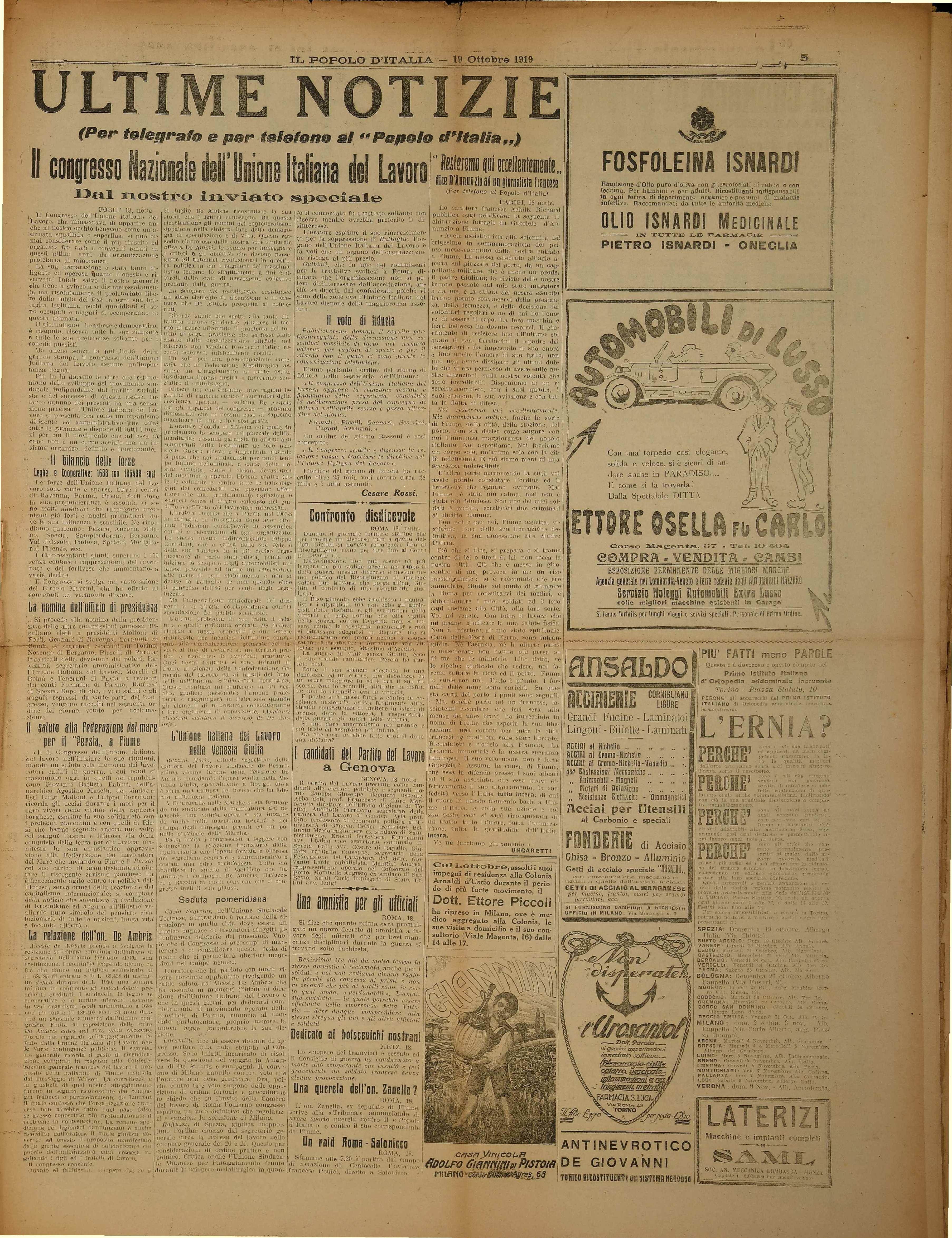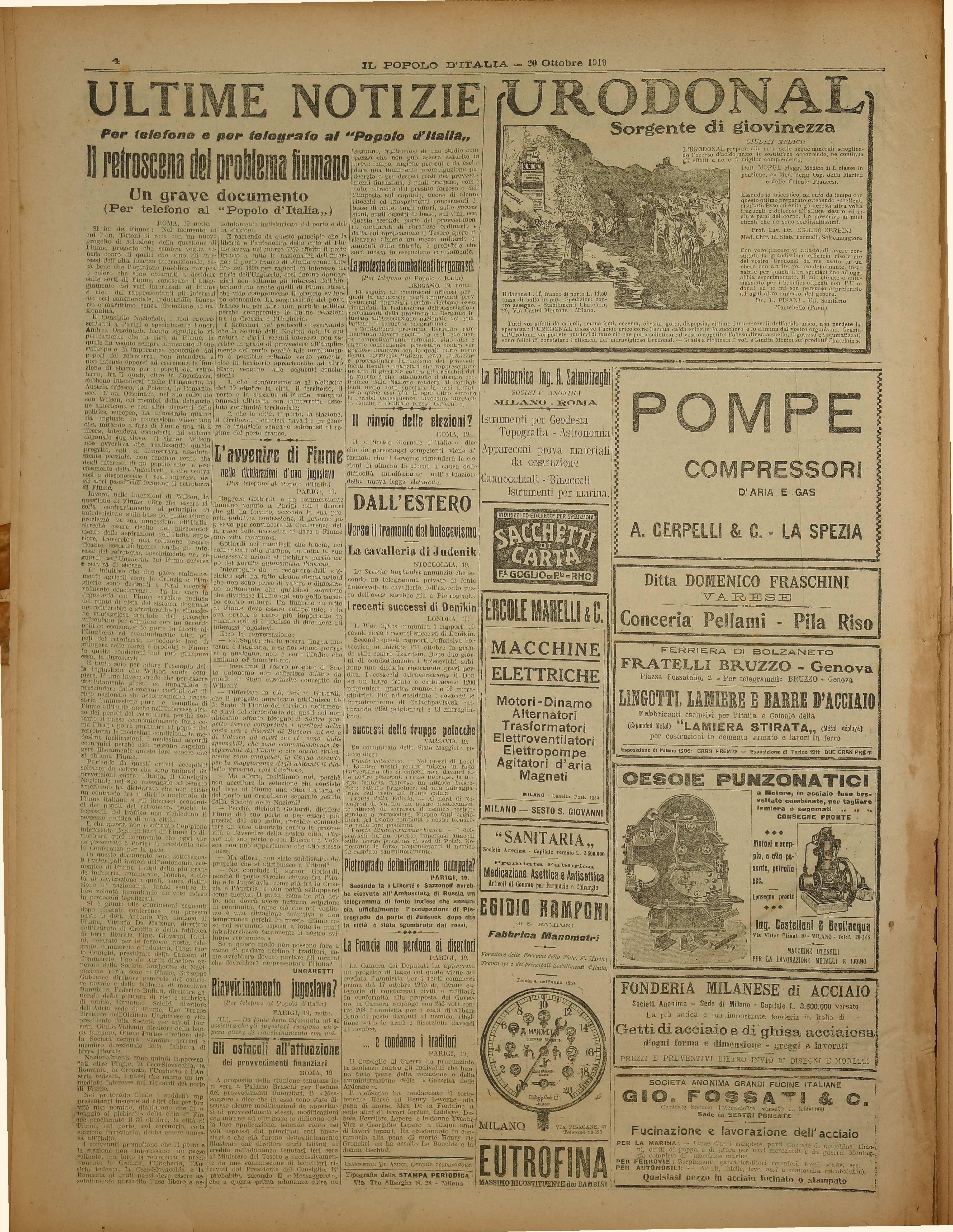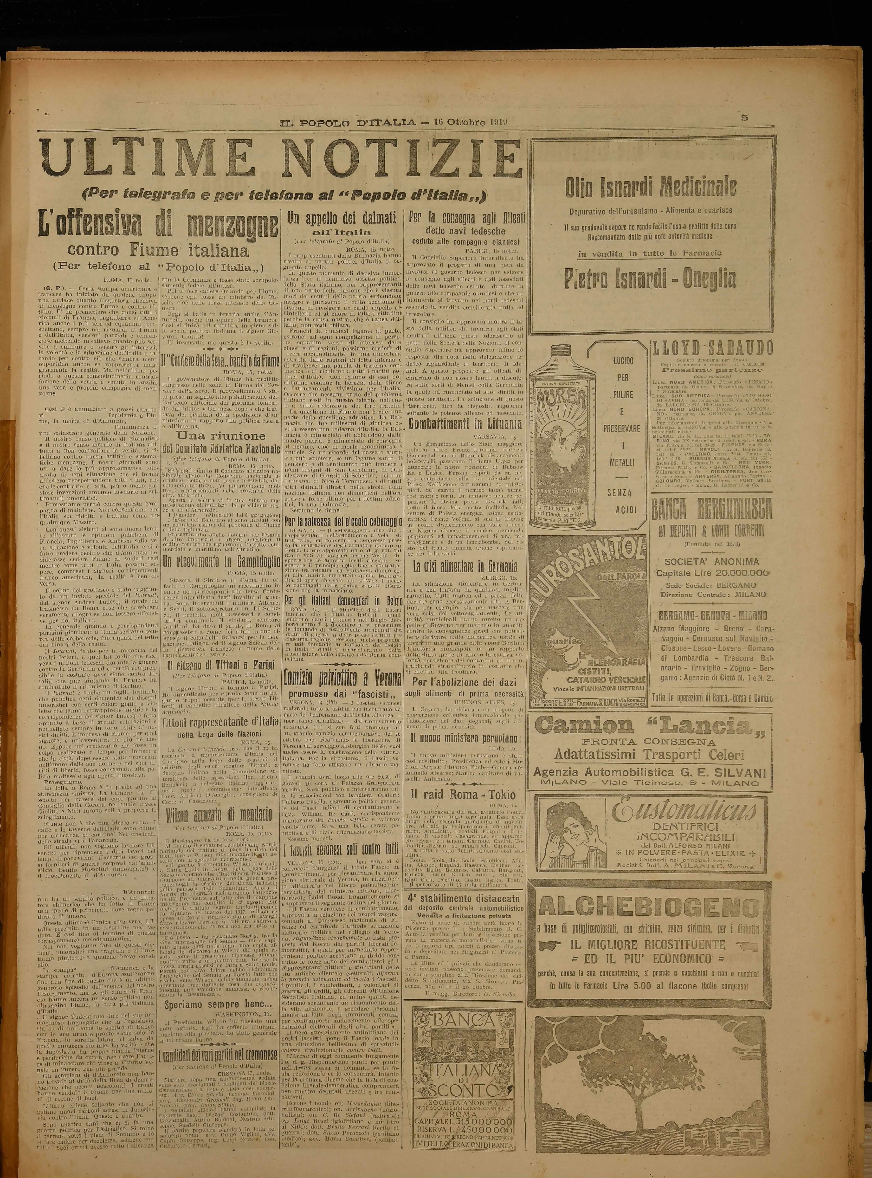 Ll'e gli inte classi e di regi ivere nazio) te in un dall di lott Ippre: una parola di fratc n EL DI O di rieniamo a tutti i pa mi 0 proposito alleati di: idinaria contr E litic nuno di jiara non I Fiume sorti di Memel colla Geri = l attacce Occorre che ne 1a Ne} 3viere ella TOv Imento ha rinunciuto suoj diritti in preso in uito pubblic ia A '° erritorio. La soluzione di dque lon è che sn]ta alleat tica. La mazia che due mille alorios lir viltà vesero non indegsna d Italia. la mazia minacciata di abbandono madre p Iinace ConN: dello al nemico, cioè di morte n dice l ront Se un ricordo 2Ì sto piuò scuotere, i di sentin \ î ESET i GO omi insigni di San Gerolamo, Dio e MI |'Zionale eletto d Î ziano, di Giorgio di Sebenico, dei due Ne i Il ester pett ne driatico. Come rana, d contra sulla riva orienta ISAIBO AE comandanie' Rizzt appariengono inol |altri dalma aa s NO ro isciarle ai entanti delle provjincie- delle | Sul c nemico lasciò LSC Tiugslie Furono respinti da un 16 ia non dimentichi nell or| E morti e tativo nemico p nii ine u 10ider oMma-ni9! hde gogienaq & I eNerg 3 MACT aO SISAZ COA |a ea] P' 177 ai e r Vorinia al sud di Ol: mo del probiema di Fiume | 1U OMIVGGGN LL ; con abile sono finora tenu- | e 4. l szum dispers nemico prendendo e uiranno e d impad: adosi di un: a important 2, ieri derazionecon IMa, hanno app fanno voti al Gov bbliche di| di un b Sul 1°à fatt porre autorità spettare il principio dgl bera co zione fra armatori ed equirzggi, da sidera sì alla & Mercan la trauuuu alo vaggiun- Zione che ijasi NAS nartecipa alla Z101 e & ben lo: del Jour n e - i prezzi d ministri Albricci |FG ecce LIne alti. A ROMA 1nascCer