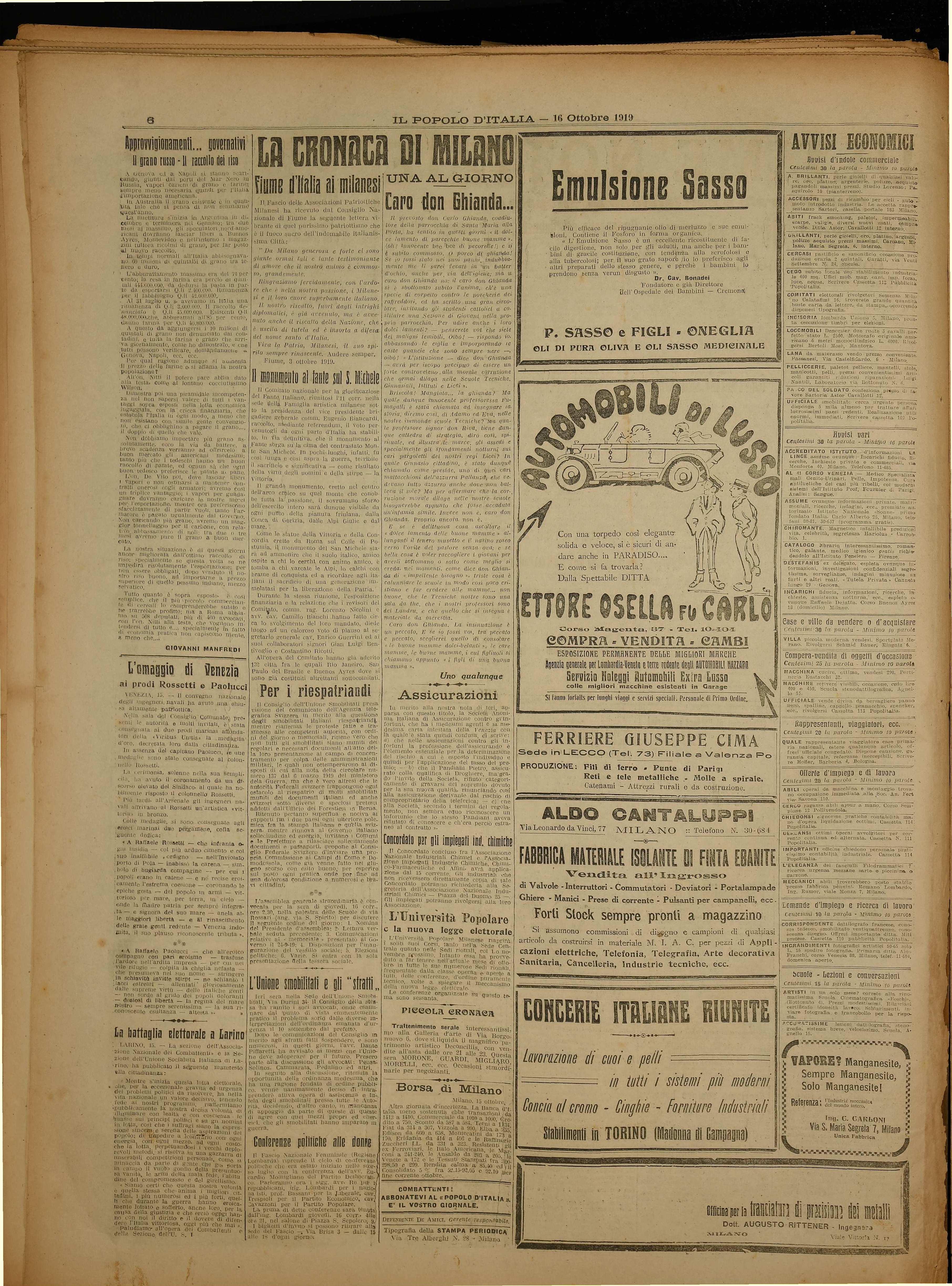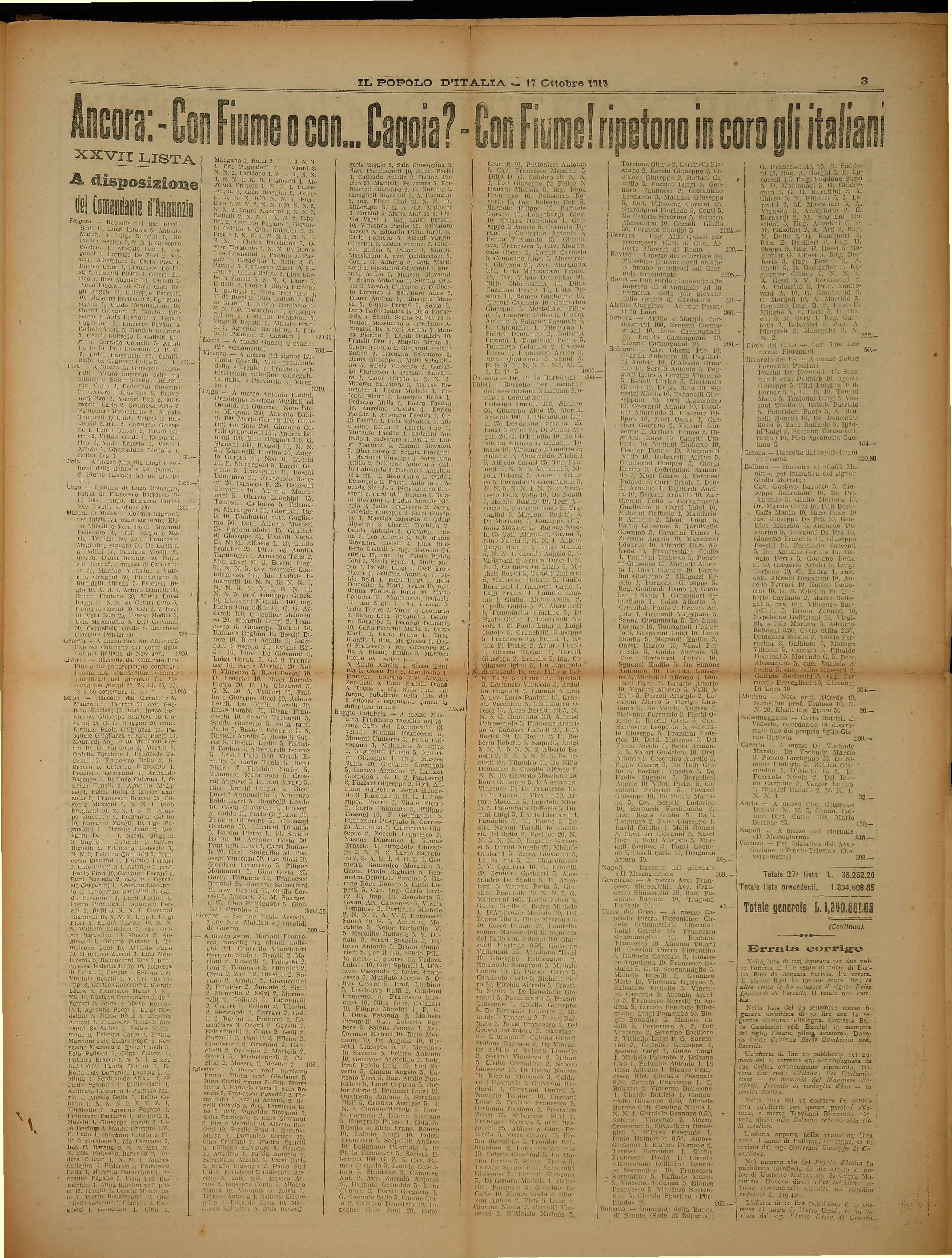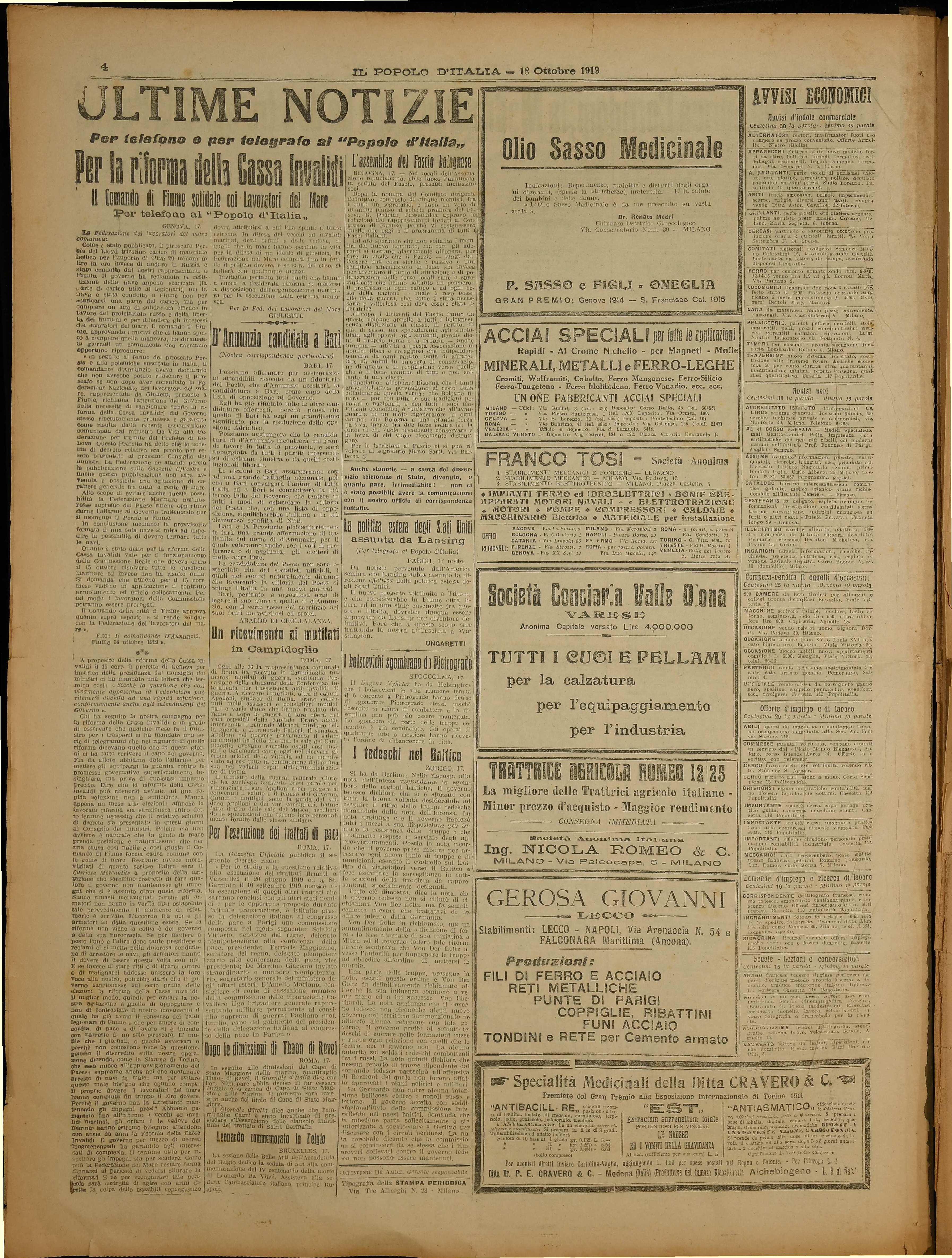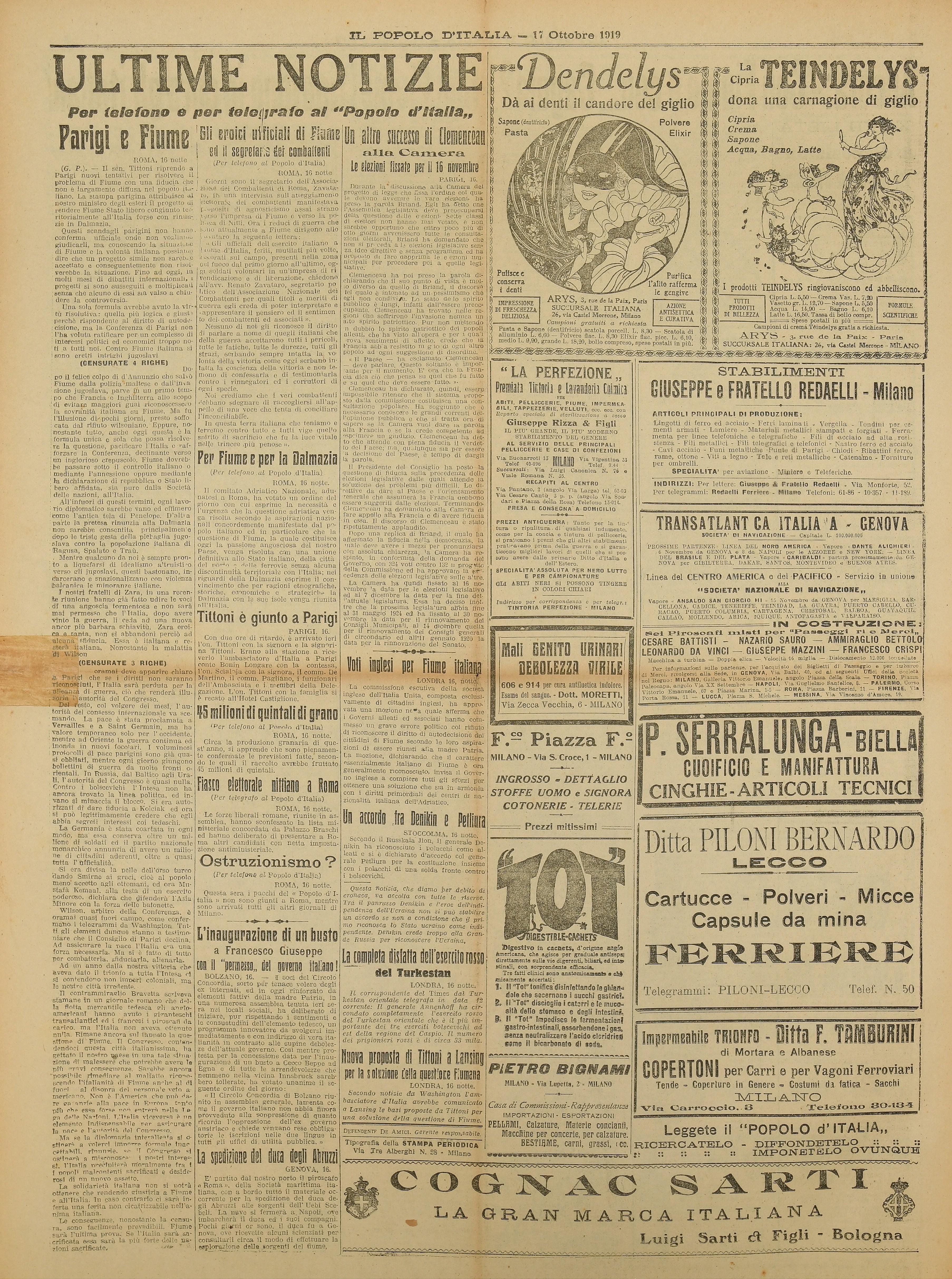 Ll'e gli inte classi e di regi ivere nazio) te in un dall di lott Ippre: una parola di fratc n EL DI O di rieniamo a tutti i pa mi 0 proposito alleati di: idinaria contr E litic nuno di jiara non I Fiume sorti di Memel colla Geri = l attacce Occorre che ne 1a Ne} 3viere ella TOv Imento ha rinunciuto suoj diritti in preso in uito pubblic ia A '° erritorio. La soluzione di dque lon è che sn]ta alleat tica. La mazia che due mille alorios lir viltà vesero non indegsna d Italia. la mazia minacciata di abbandono madre p Iinace ConN: dello al nemico, cioè di morte n dice l ront Se un ricordo 2Ì sto piuò scuotere, i di sentin \ î ESET i GO omi insigni di San Gerolamo, Dio e MI |'Zionale eletto d Î ziano, di Giorgio di Sebenico, dei due Ne i Il ester pett ne driatico. Come rana, d contra sulla riva orienta ISAIBO AE comandanie' Rizzt appariengono inol |altri dalma aa s NO ro isciarle ai entanti delle provjincie- delle | Sul c nemico lasciò LSC Tiugslie Furono respinti da un 16 ia non dimentichi nell or| E morti e tativo nemico p nii ine u 10ider oMma-ni9! hde gogienaq & I eNerg 3 MACT aO SISAZ COA |a ea] P' 177 ai e r Vorinia al sud di Ol: mo del probiema di Fiume | 1U OMIVGGGN LL ; con abile sono finora tenu- | e 4. l szum dispers nemico prendendo e uiranno e d impad: adosi di un: a important 2, ieri derazionecon IMa, hanno app fanno voti al Gov bbliche di| di un b Sul 1°à fatt porre autorità spettare il principio dgl bera co zione fra armatori ed equirzggi, da sidera sì alla & Mercan la trauuuu alo vaggiun- Zione che ijasi NAS nartecipa alla Z101 e & ben lo: del Jour n e - i prezzi d ministri Albricci |FG ecce LIne alti. A ROMA 1nascCer