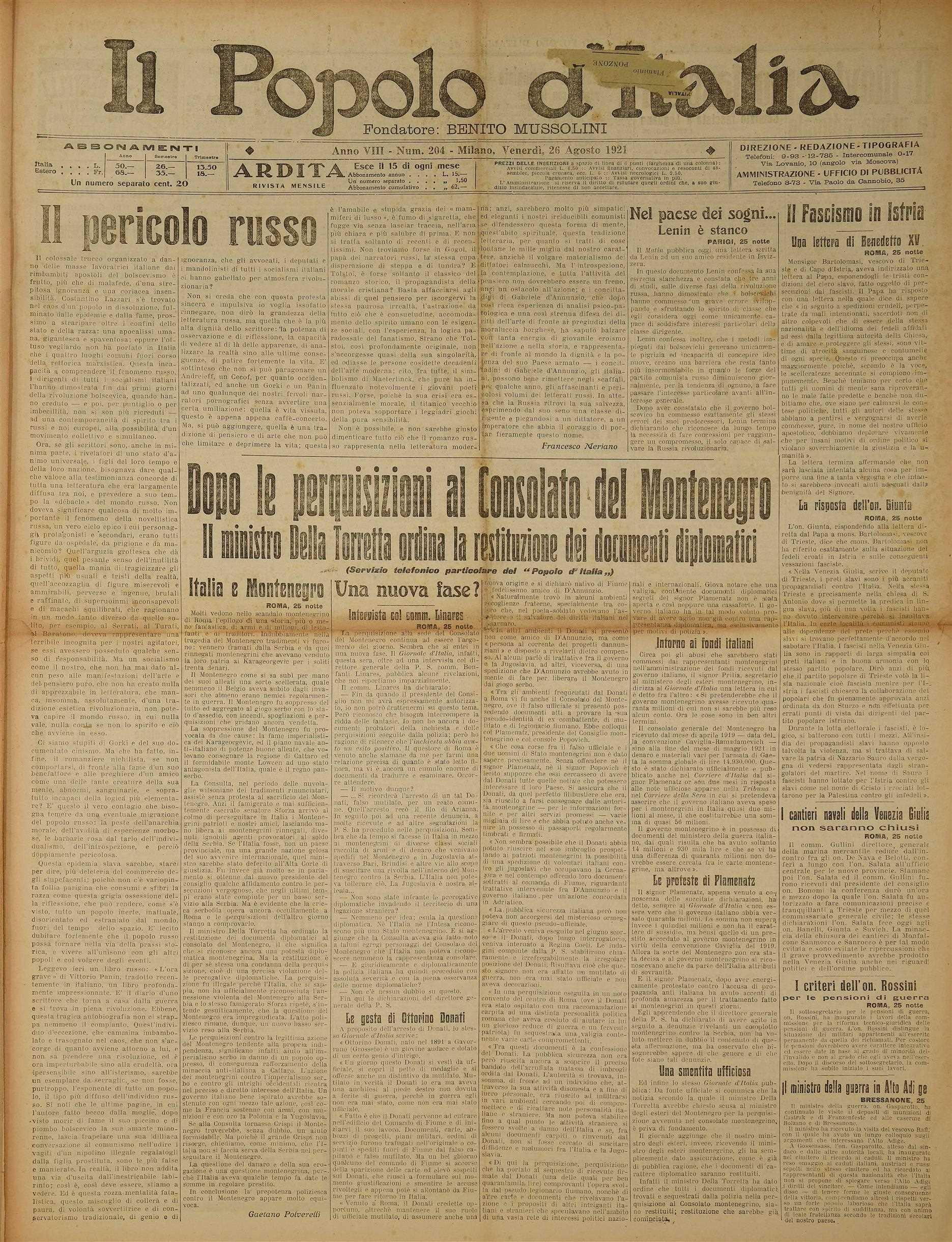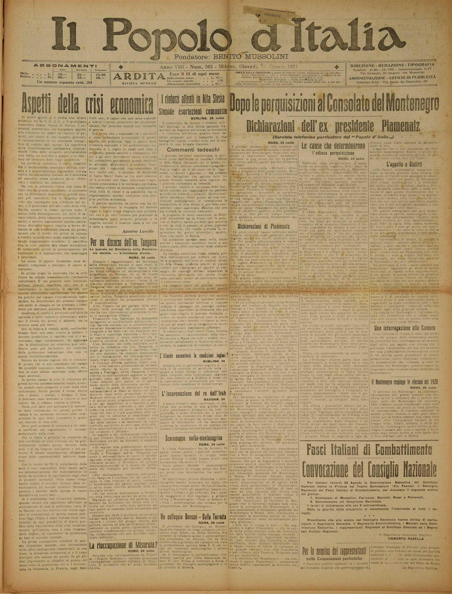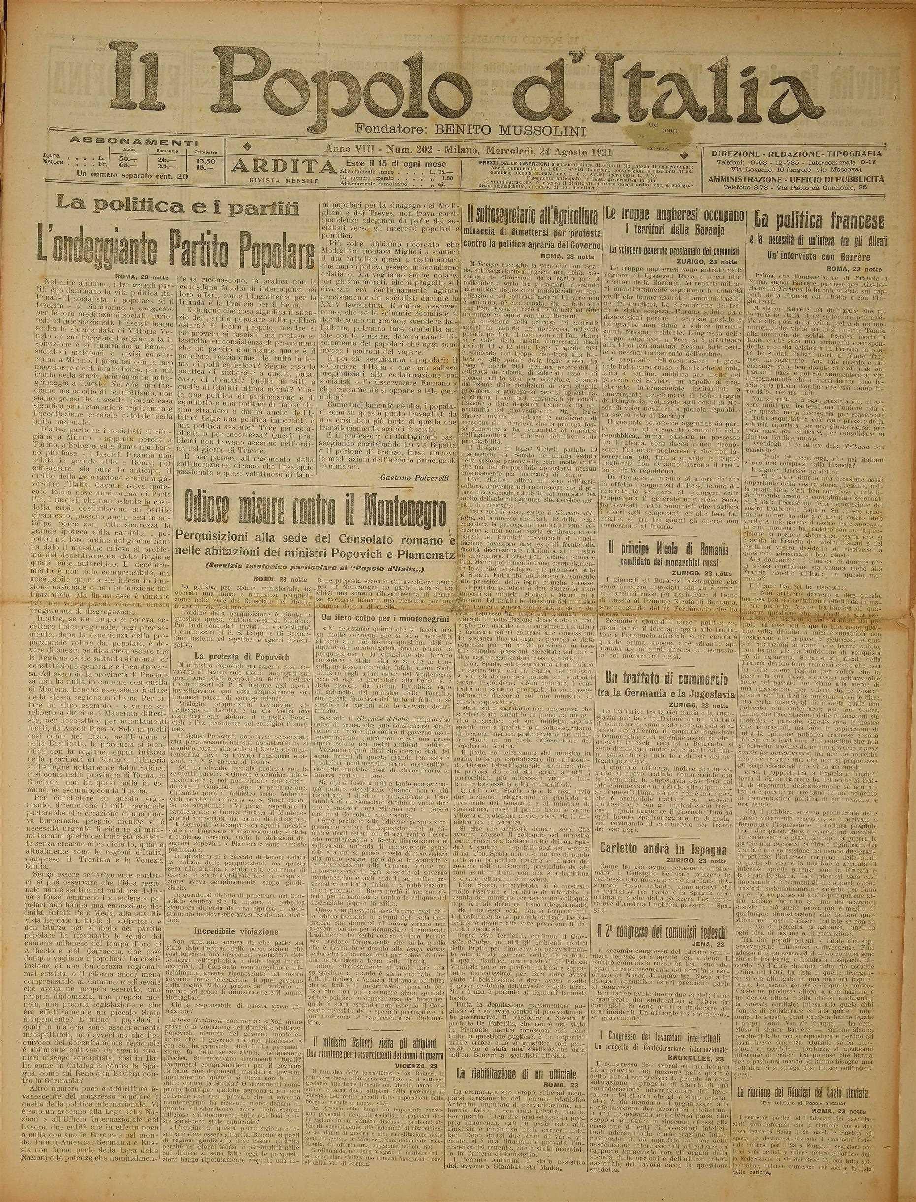 Popolo Italia 1921_08 agosto_24-31 by fondazioneisec - Issuu