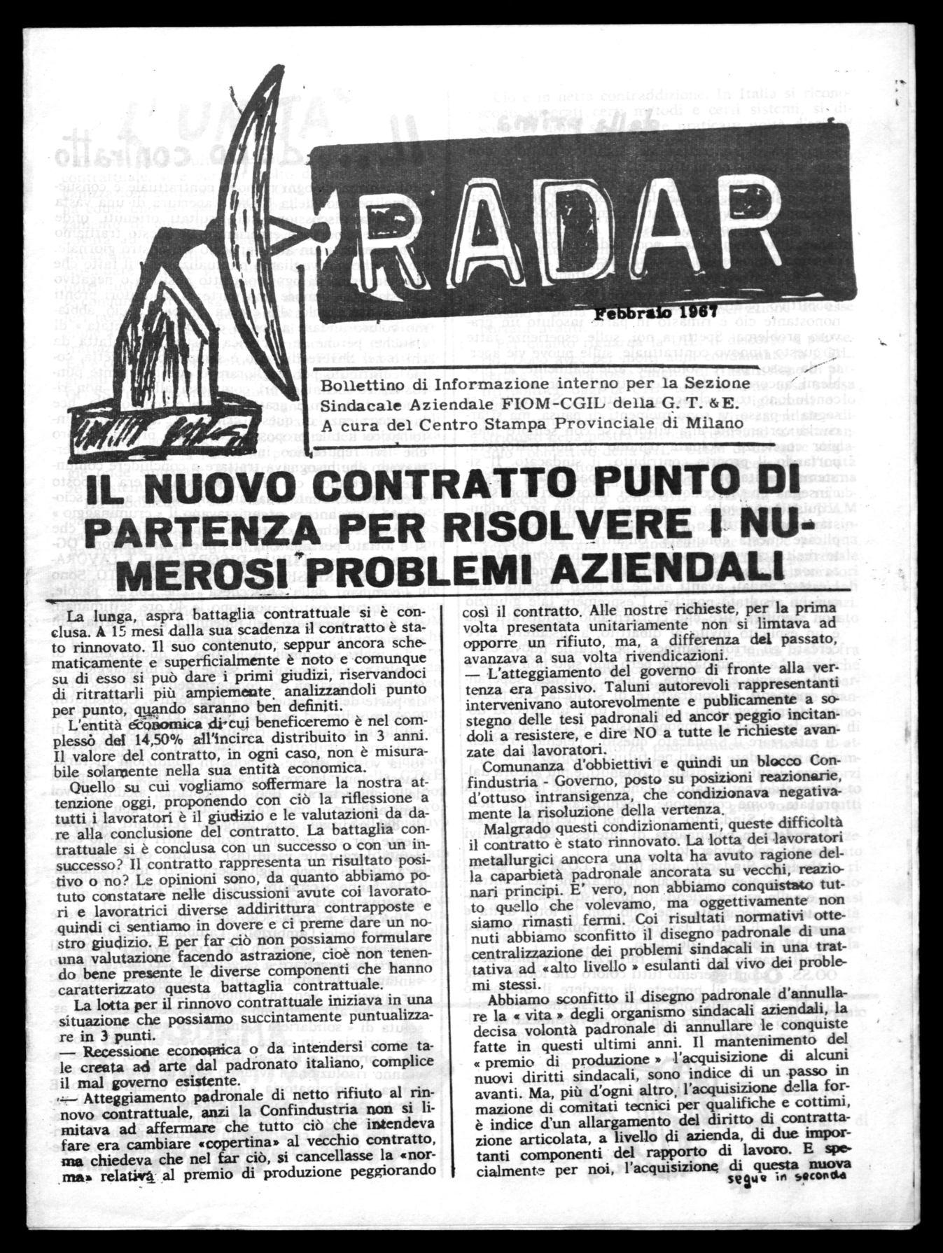 Bollettino di Informazione interno per la Sezione Sindacale Aziendale FIOM-CGIL della G. T. &E. A cura del Centro Stampa Provinciale di Milano