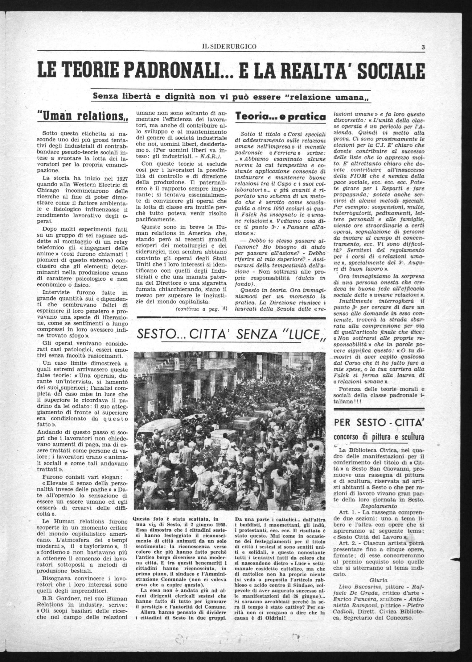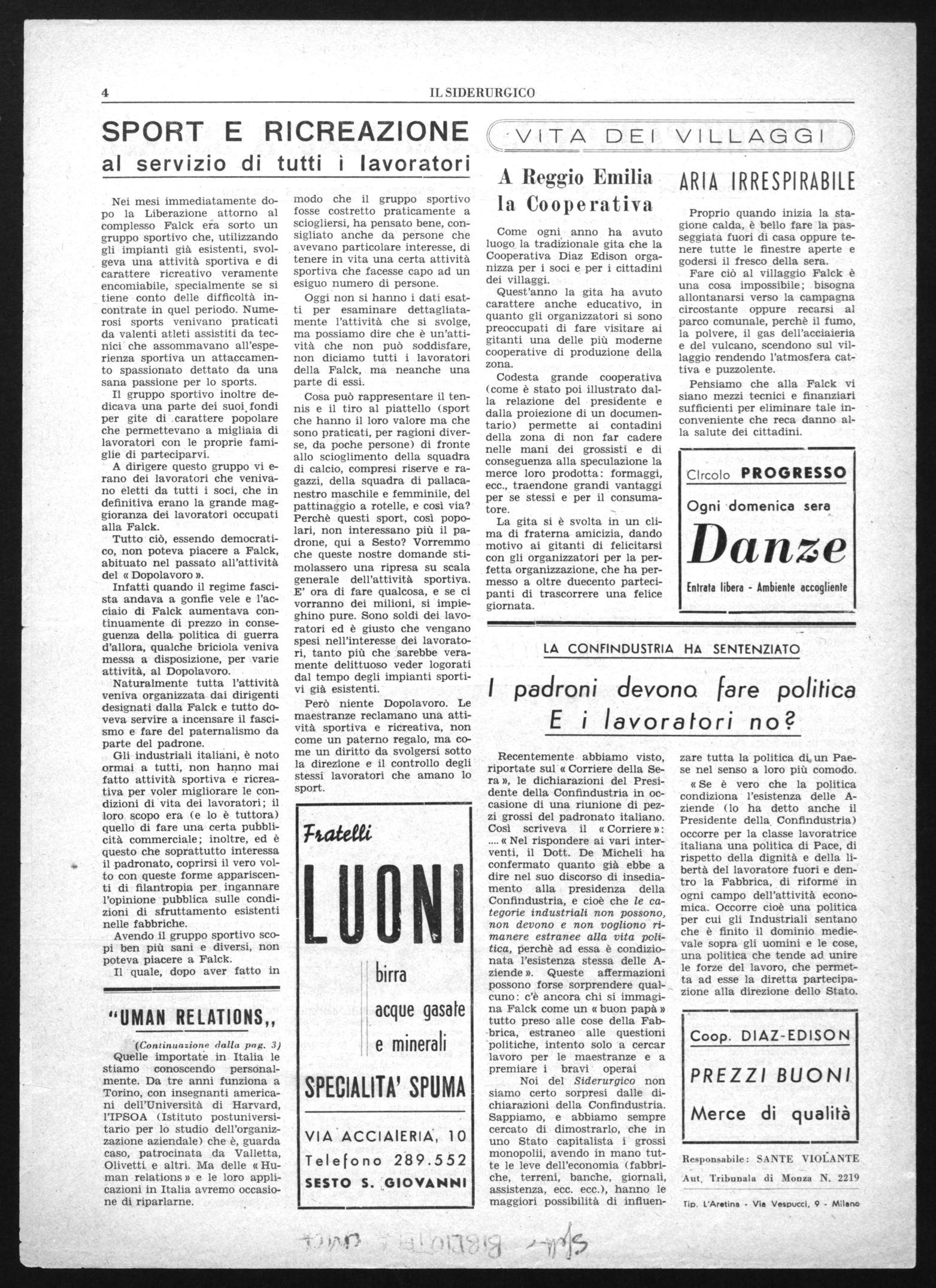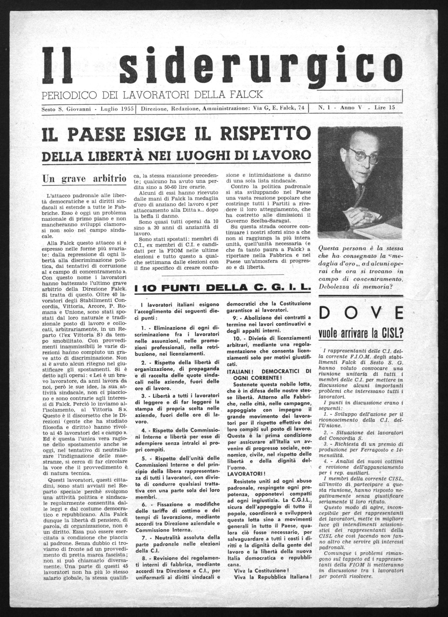 Sesto S. Giovanni - Luglio 19551 Direzione, Redazione, Amministrazione: Via G. E. Falck, 74 i N. 1 - Anno V - Lire 15