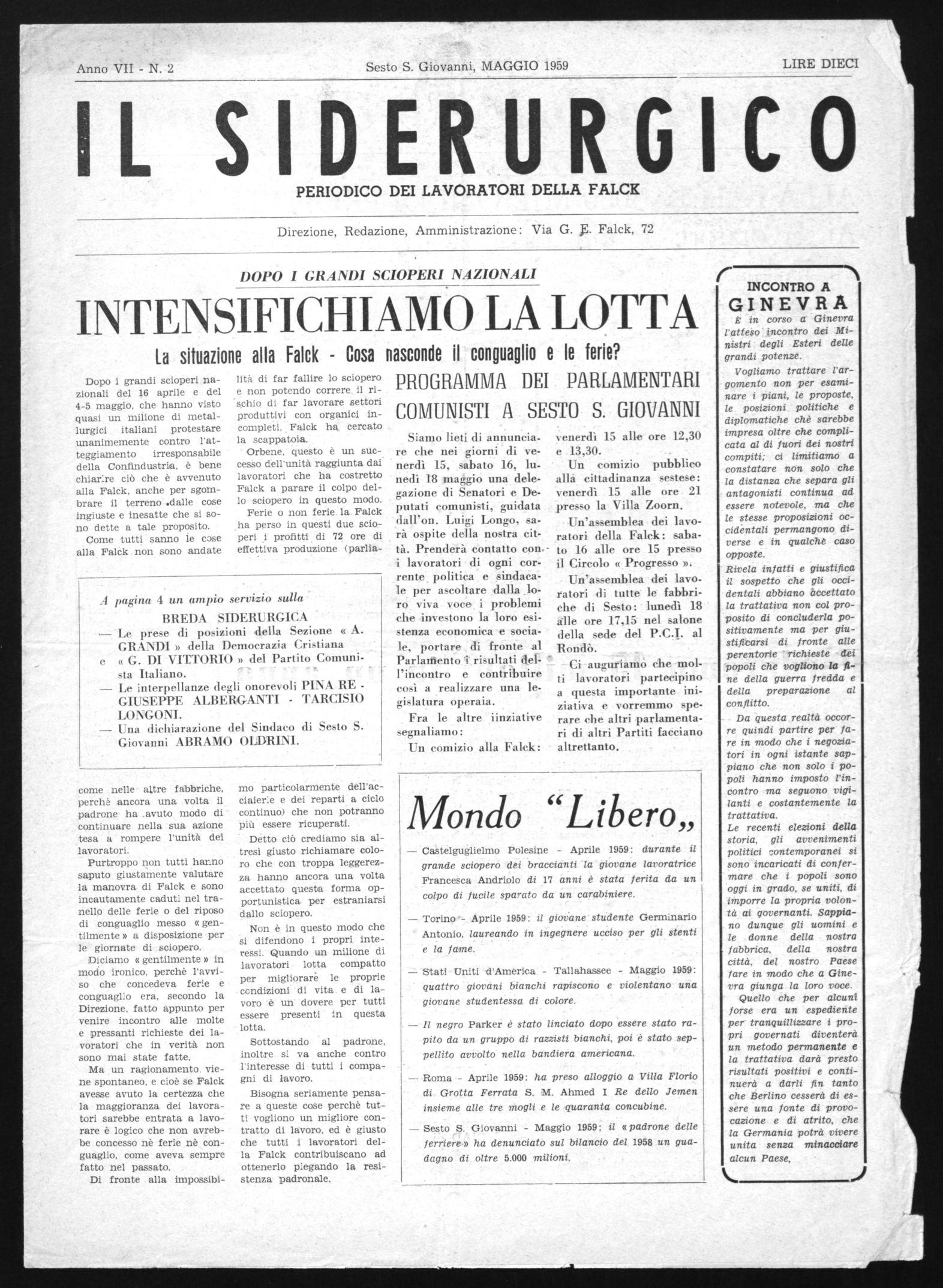 In questi giorni un gruppo di parlamentari comunisti sarà a Sesto S. Giovanni per una inchiesta sulle condizioni reali di vita dei lavoratori delle grandi fabbriche e della Breda in particolare; essi, ne siamo certi, porteranno in Parlamento la grave situazione esistente alla 4° Siderurgica e nelle altre aziende e si batteranno perchè si prendano le misure necessarie per garantire i diritti costituzionali ai lavoratori, per creare un clima nuovo di libertà e democrazia nelle fabbribre.