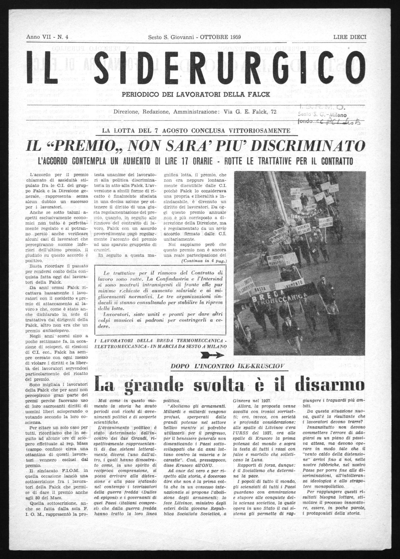 Anno VII - N. 4 Sesto S. Giovanni - OTTOBRE 1959 LIRE DIECI