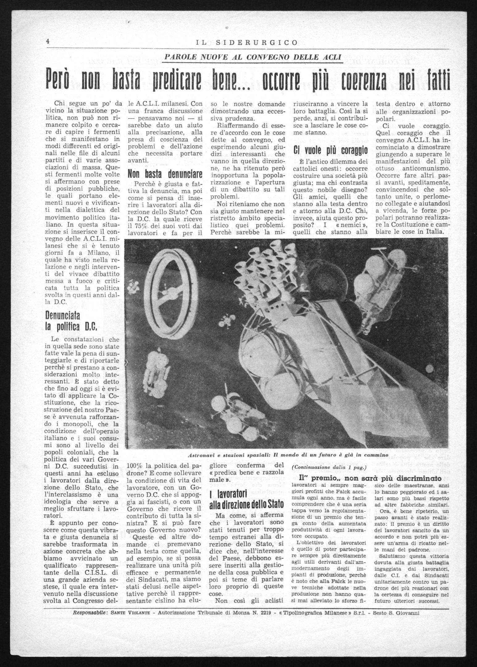 Chi segue un po' da vicino la situazione politica, non può non rimanere colpito e cercare di capire i fermenti che si manifestano in modi differenti ed originali nelle file di alcuni partiti e di varie associazioni di massa. Questi fermenti molte volte si affermano con prese di posizioni pubbliche, le quali portano elementi nuovi e vivificanti nella dialettica del movimento politico italiano. In questa situazione si inserisce il convegno delle A.C.L.I. milanesi che si è tenuto giorni fa a Milano, il quale ha visto nella relazione e negli interventi del vivace dibattito messa a fuoco e criticata tutta la politica svolta in questi anni dalla D.C.