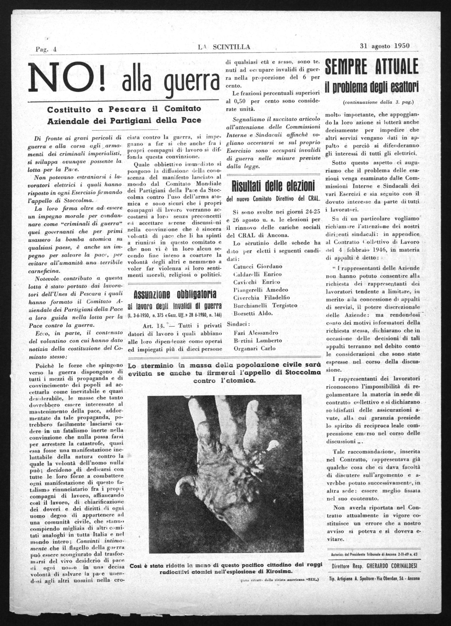 Autori:n del Presidente Tribunale di Ancona 2-11-49 n. 43 Direttore Resp. GHERARDO CORINALDESI Tip. Artigiane A. Spollore - Via Oberden, 5A - Ancona