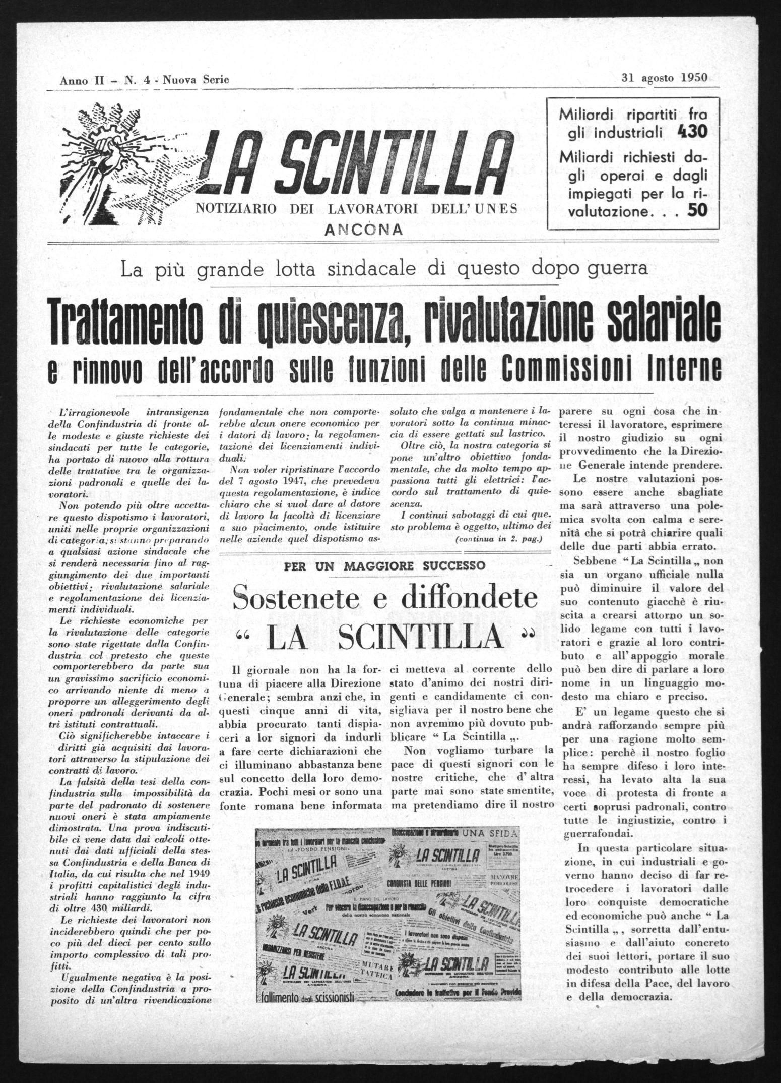 In questa particolare situazione, in cui industriali e governo hanno deciso di far retrocedere i lavoratori dalle loro conquiste democratiche ed economiche può anche " La Scintilla „ , sorretta dall'entusiass no e dall'aiuto concreto dei suoi lettori, portare il suo modesto contributo alle lotte in difesa della Pace, del lavoro e della democrazia.