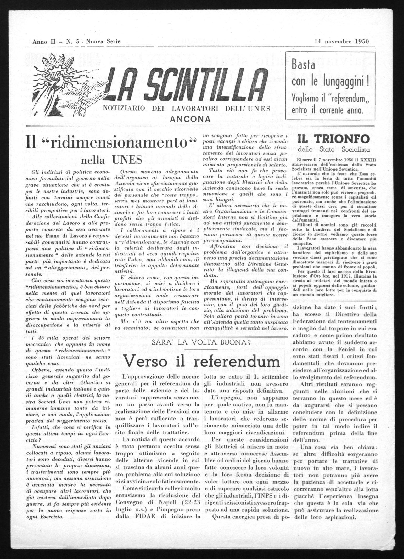 Per queste considerazioni gli Elettrici si misero in moto attraverso numerose Assemblee od ordini del giorno hanno fatto conoscere la loro volontà la loro ferma decisione di voler lottare con ogni mezzo di superare qualsiasi ostacolo che gli industriali, l'INPS e i dirigenti scissionisti avessero frapposto ad una rapida soluzione.