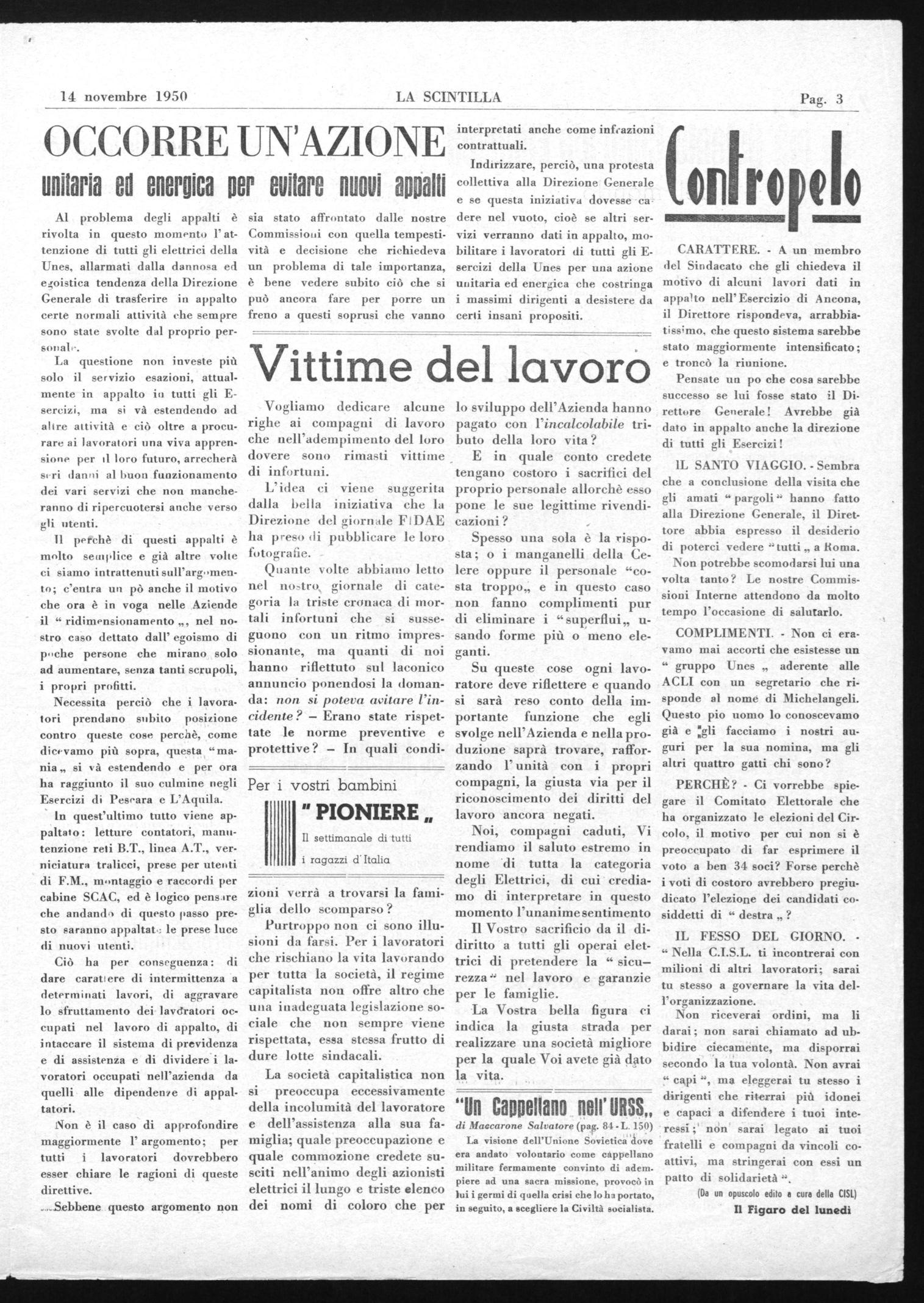 Su queste cose ogni lavoratore deve riflettere e quando si sarà reso conto della importante funzione che egli svolge nell'Azienda e nella produzione saprà trovare, rafforzando 1' unità con i propri compagni, la giusta via per il riconoscimento dei diritti del lavoro ancora negati.