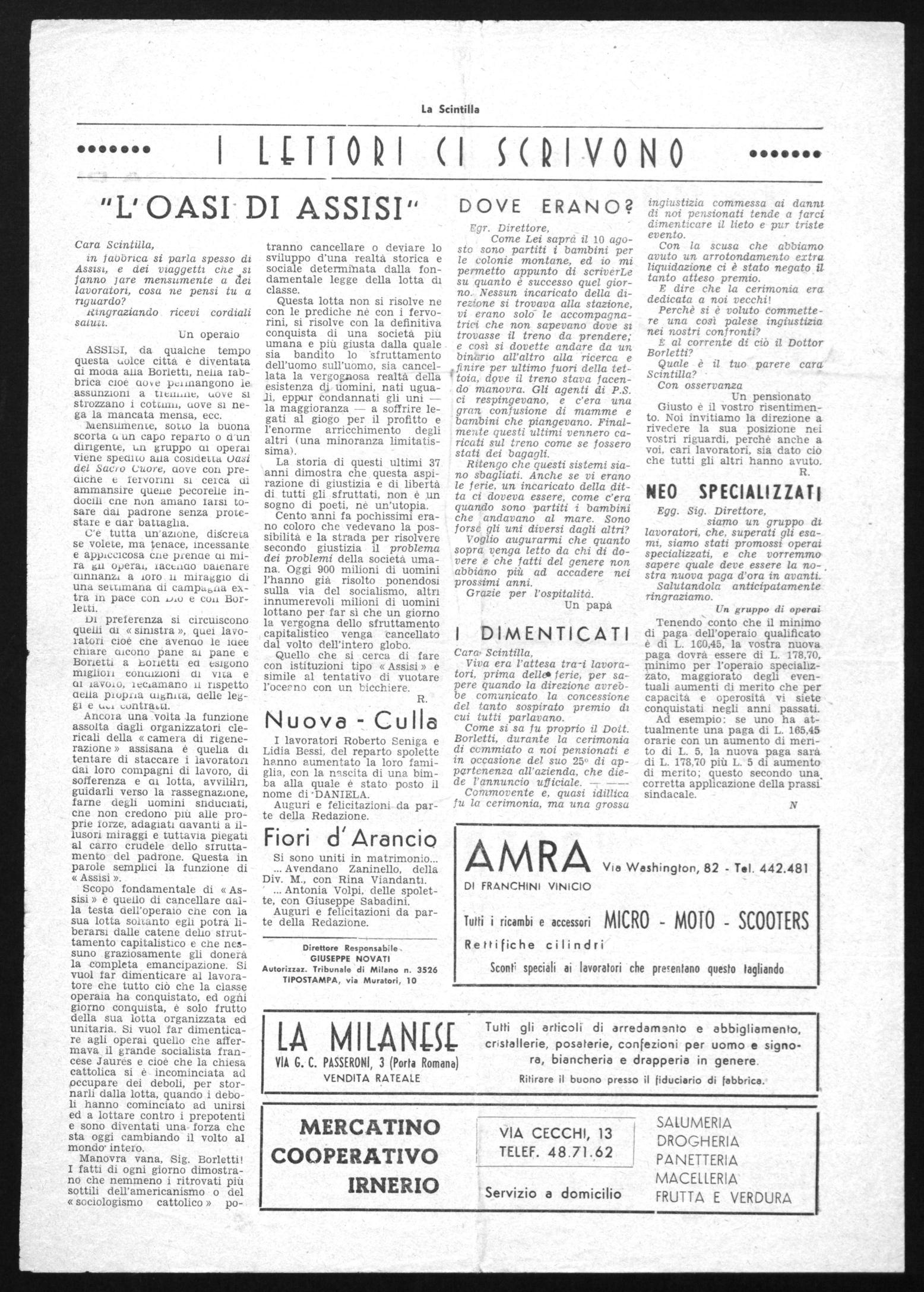 ASSILI, da qualche tempo questa dolce città e diventata ai moda aiia Borletti, nella fabbrica cioè cove peimangono le assunzioni a tieluille, dove si strozzano i cottimi, uova si nega la mancata mensa, ecc.