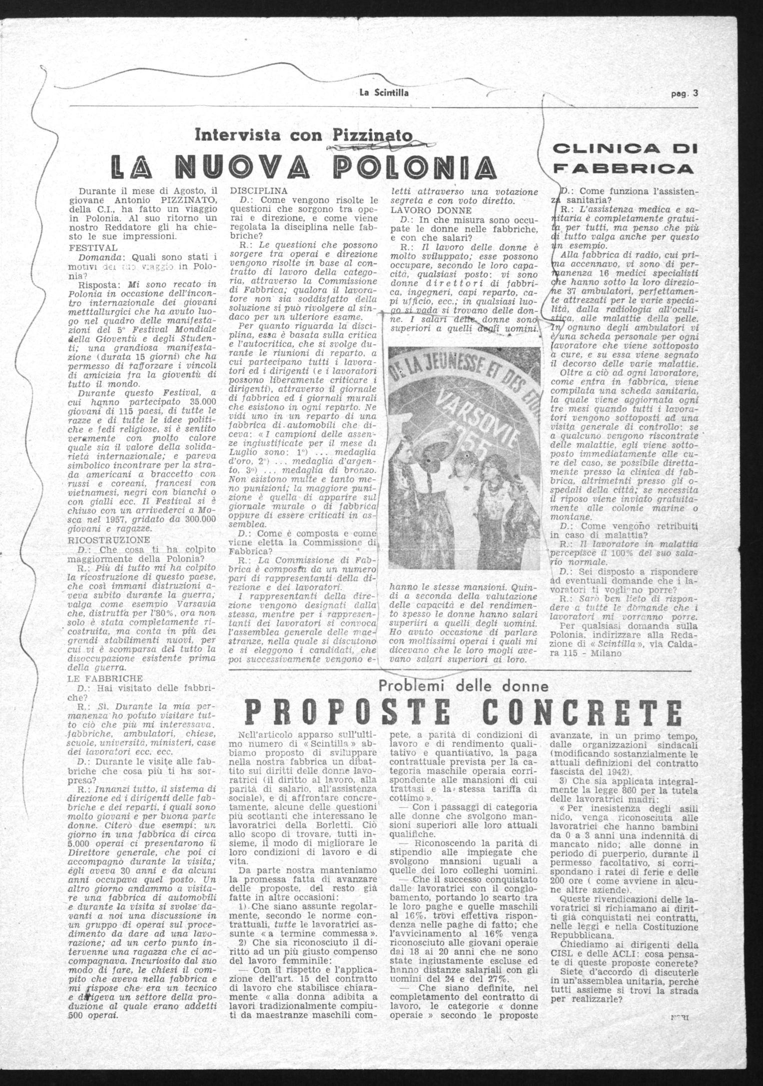 R.: Sarò ben lieto di rispondere a tutte le damande che i lavoratori mi vorrcnno porre. Per qualsiasi domanda sulla Polonia, indirizzare alla Redazione di « Scintilla », via Caldara 115 - Milano avanzate, in un primo tempo, dalle organizzazioni sindacali (modificando sostanzialmente le attuali definizioni del contratto fascista del 1942).