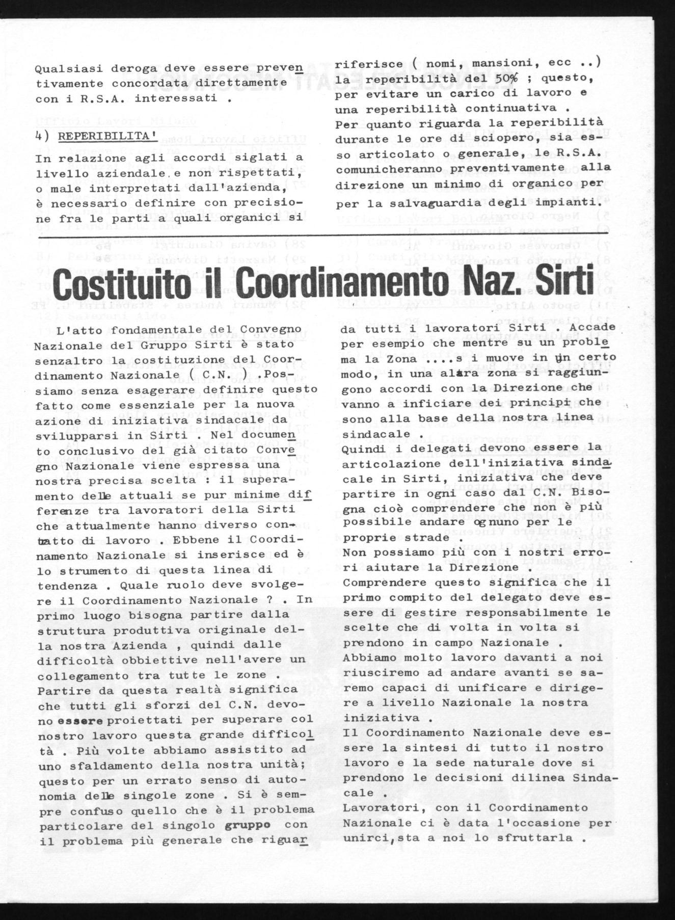 Bollettino unitario del Coordinamento Nazionale Sirti - dicem. 74'pubbliche e dai generi di prima necessità .
