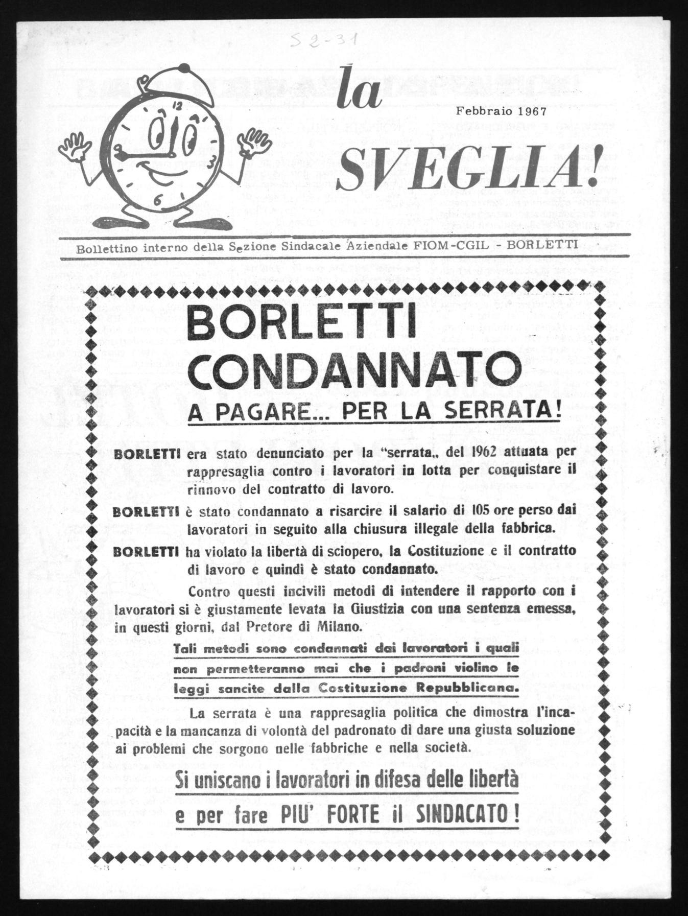 Bollettino interno della S e zione Sindacale Aziendale FIOM-CGIL - BORLETTI