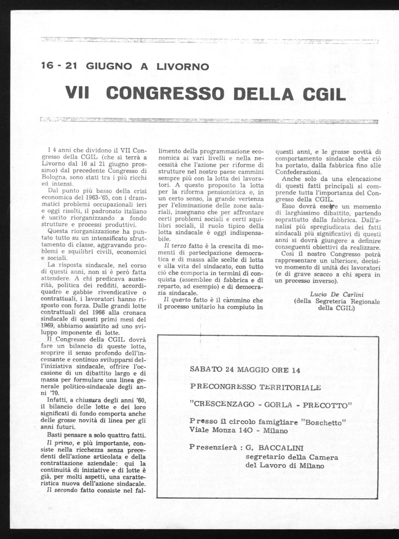 Il Congresso della CGIL dovrà fare un bilancio di queste lotte, scoprire il senso profondo dell'incessante e continuo svilupparsi dell'iniziativa sindacale, offrire l'occasione di un dibattito largo e di massa per formulare una linea generale politico-sindacale degli anni '70.