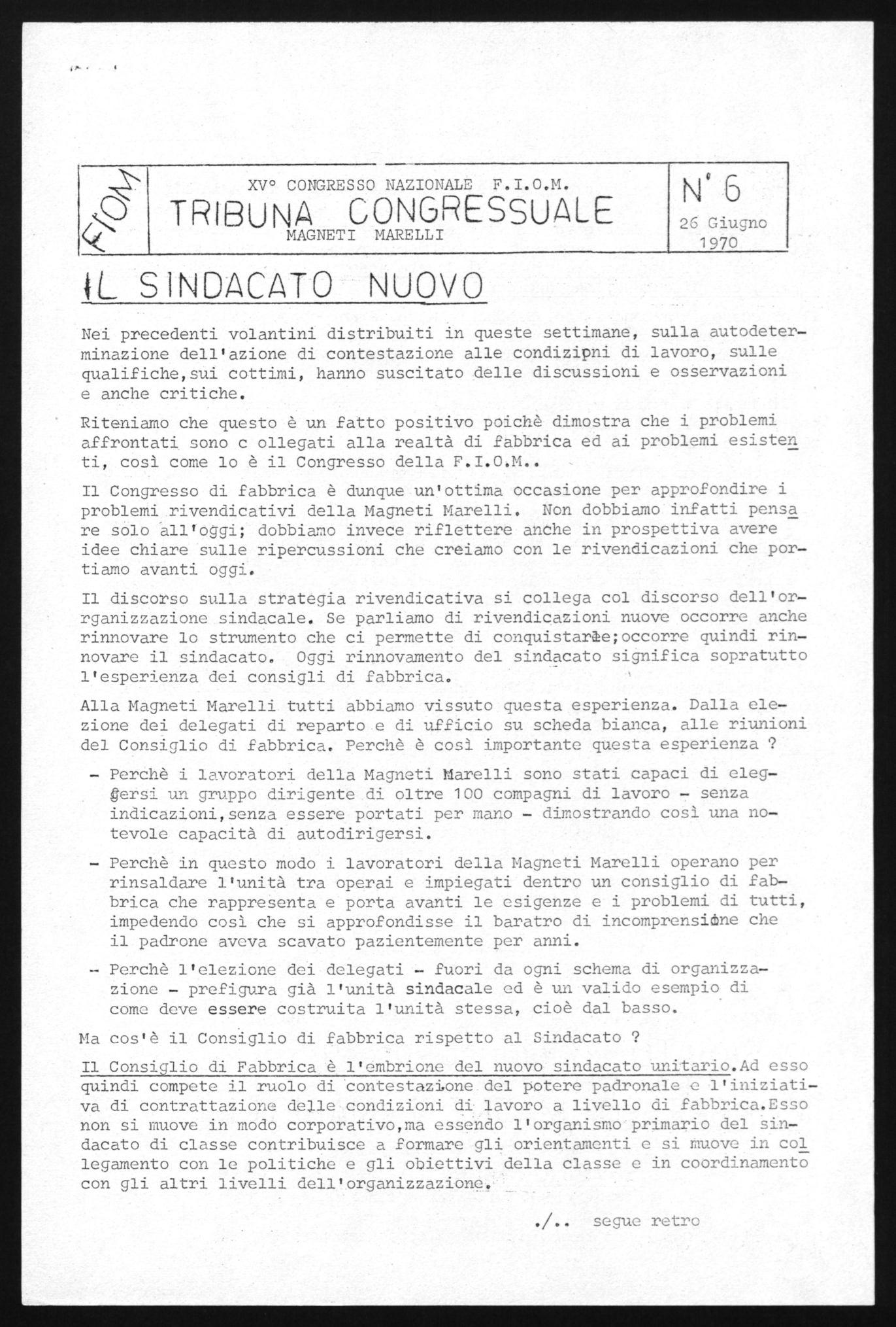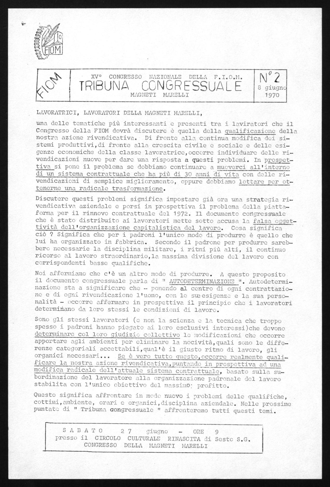 Nei sei numeri della "Tribuna Congressuale"-abbiamo cercato di sintetizza re alcuni dei terni che stanno al centro del dibattito del Cobgresso della FIOM, come sono al centro delle attenzioni dei lavoratori della Magneti Marelli dopo l'elezione dei delegati di reparto e ufficio e la costituzione del Consiglio di fabbrica,e dopo l'apertura della verLenzn n7inr(121n. Ma il Congresso affronta anche altri temi: da quello ifitennale a quello del rapporto con - le forze politiclip, a cripilo dell'impegno del sin dacato per le riforme sociali.
