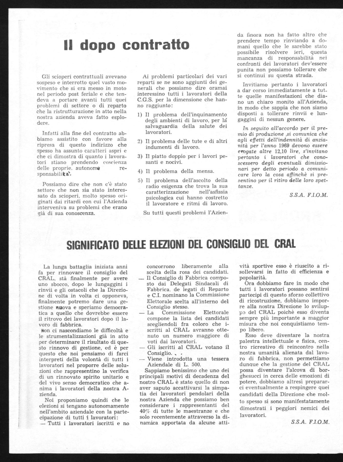 Gli scioperi contrattuali avevano sospeso e interrotto quel vasto movimento che si era messo in moto nel periodo post feriale e che tendeva a portare avanti tutti quei problemi di settore o di reparto che la ristrutturazione in atto nella nostra azienda aveva fatto esplodere.