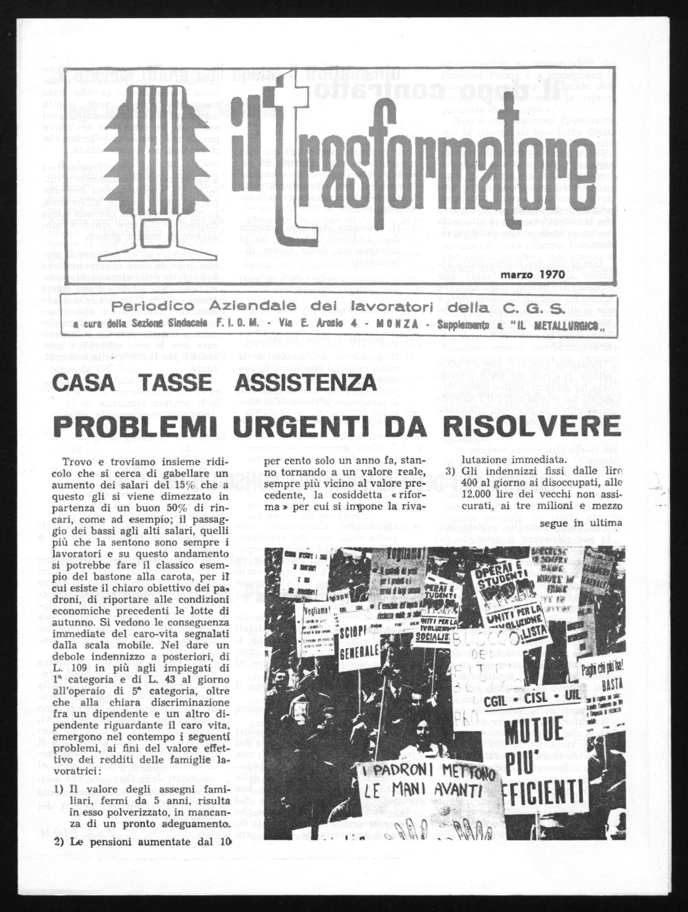 Ai problemi particolari dei vari reparti se ne sono aggiunti dei generali che possiamo dire oramai interessino tutti i lavoratori della C.G.S. per la dimensione che hanno raggiunto: