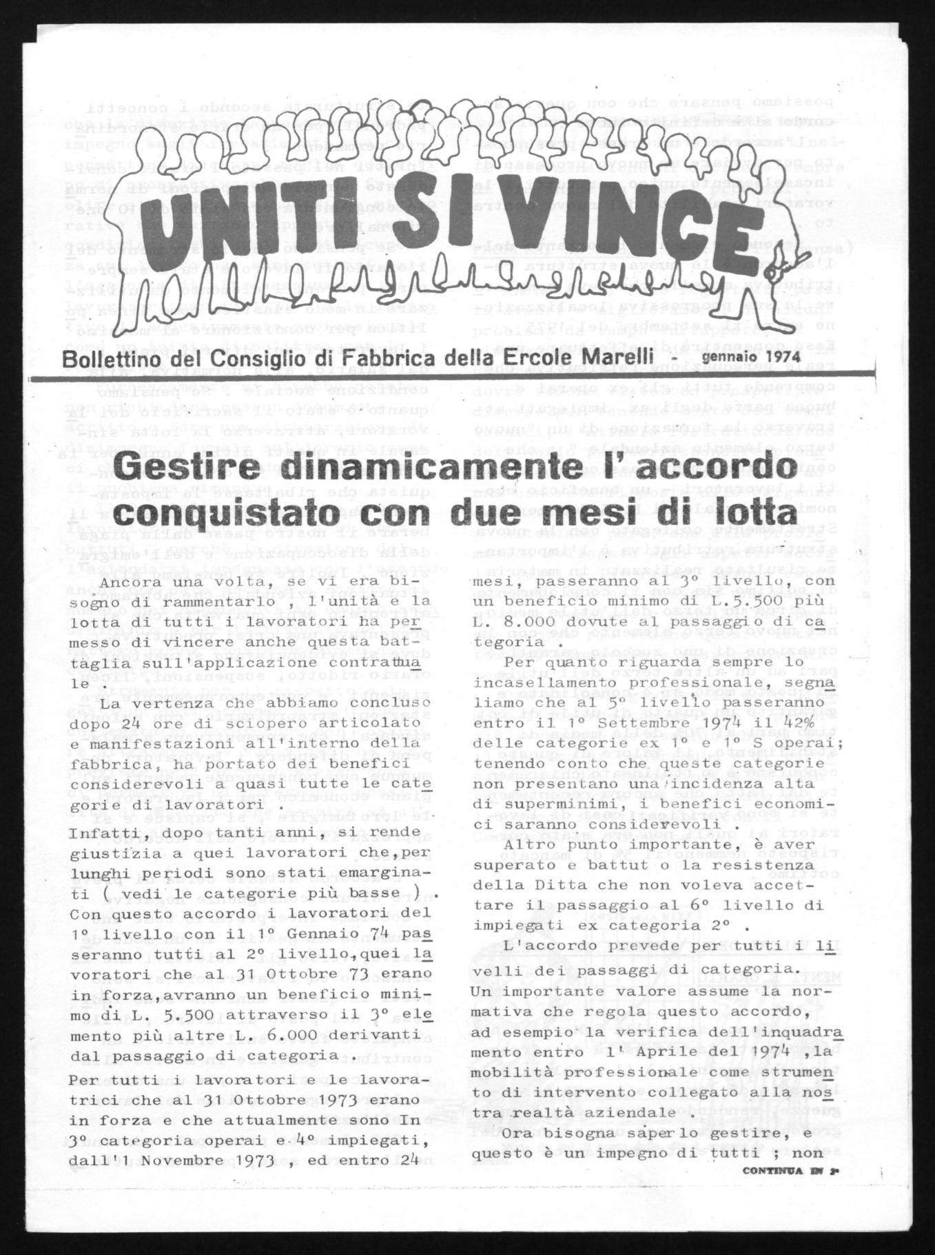 Bollettino del Consiglio di Fabbrica della Ercole Marelli gennaio 1974