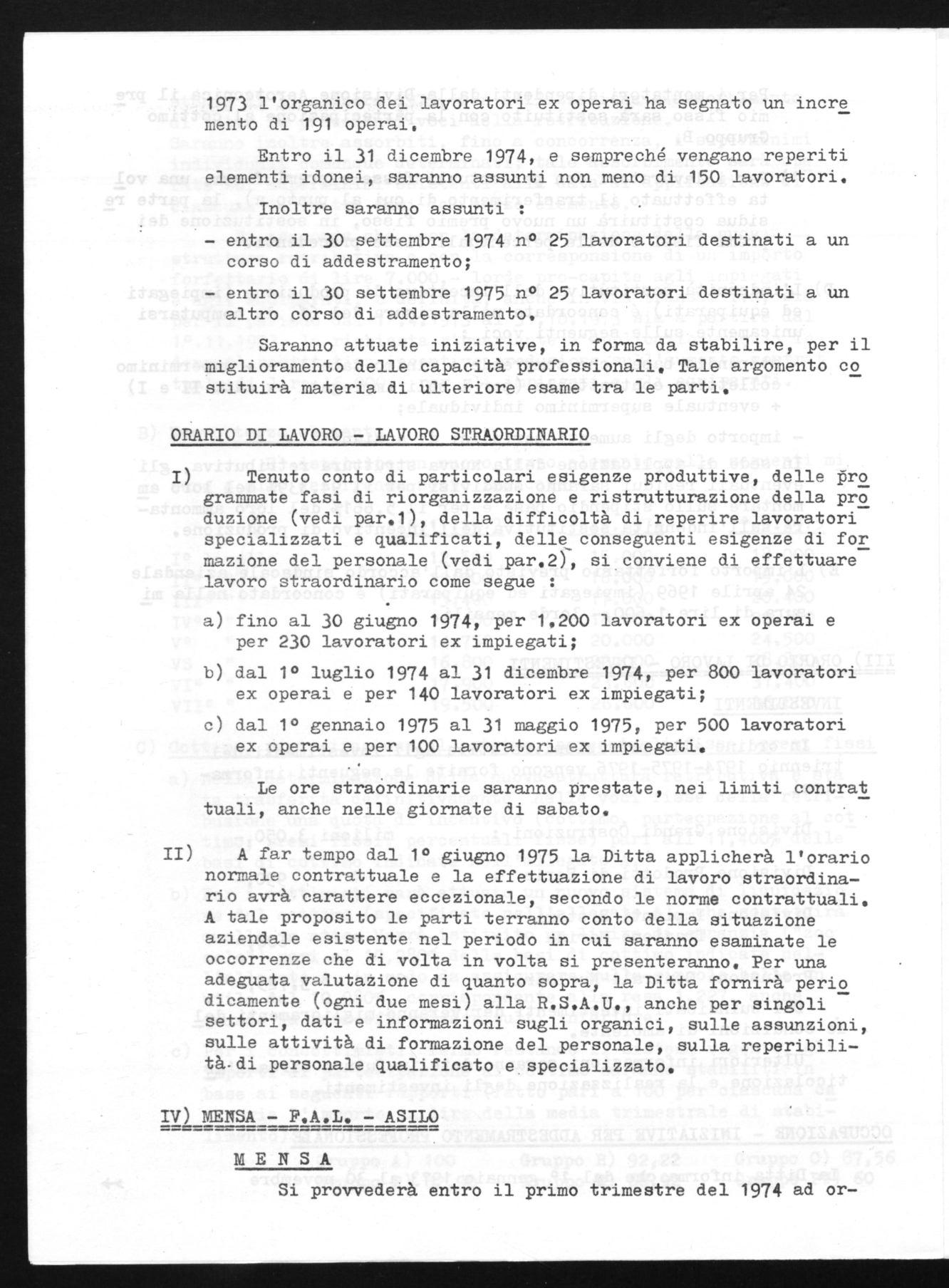 Entro il 31 dicembre 1974, e sempreché vengano reperiti elementi idonei, saranno assunti non meno di 150 lavoratori. Inoltre saranno assunti :