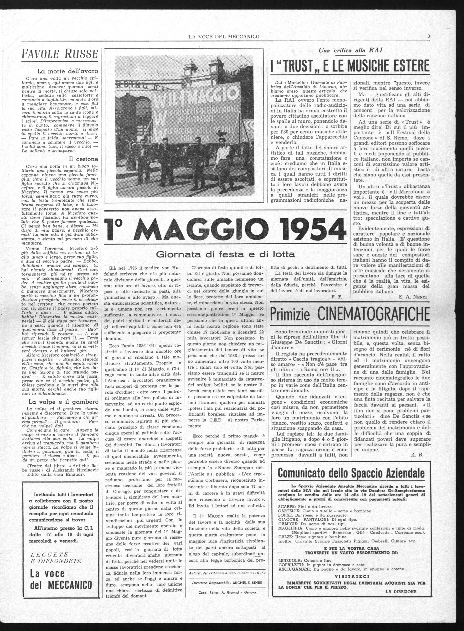 PERIODICO DEI LAVORATORI DELL'ANSALDO MECCANICO • UNA COPIA L. 15 ANNO 4° N. 3 •