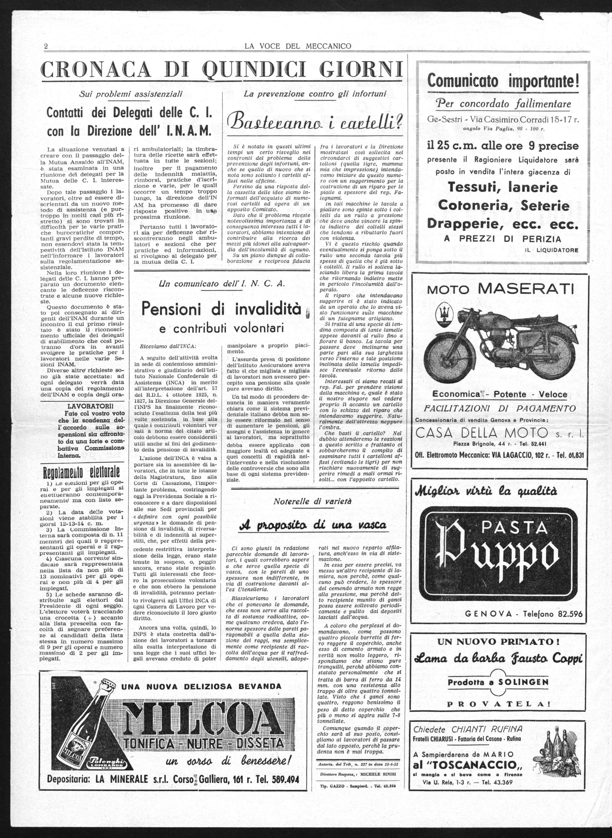 Nel quadro della situazione aziendale, secondo noi vi sono due problemi cardini, che se risolti determineranno il buon andamento . aziendale e dare inizio ad una concreta reciproca collaborazione tra la Direzione Aziendale e la C. I. nell'interesse dei lavoratori dell'Azienda e ci riferiamo spe.cificataniente alla riorganizzaione delle Aziende IRI e della sistemaione e miglioramenti salariali per i lavoratori Metallurgici.