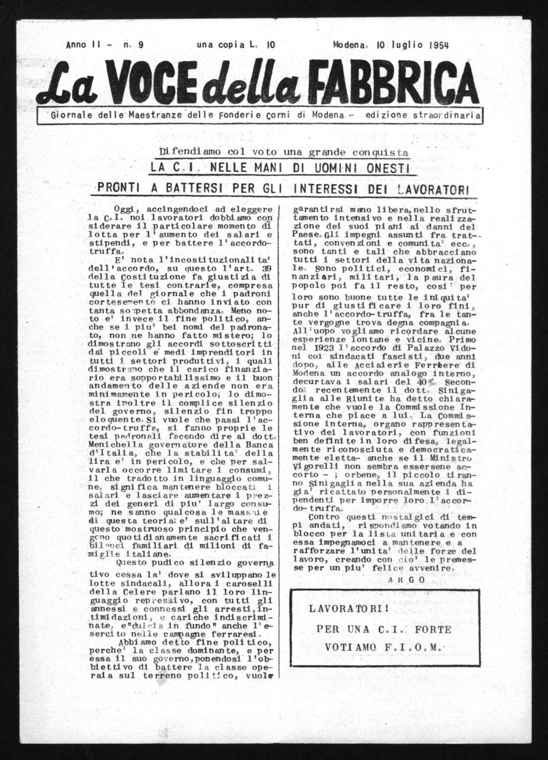 Anno 11 - n, 9 una copia L, IO Modena, IO luglio 1954