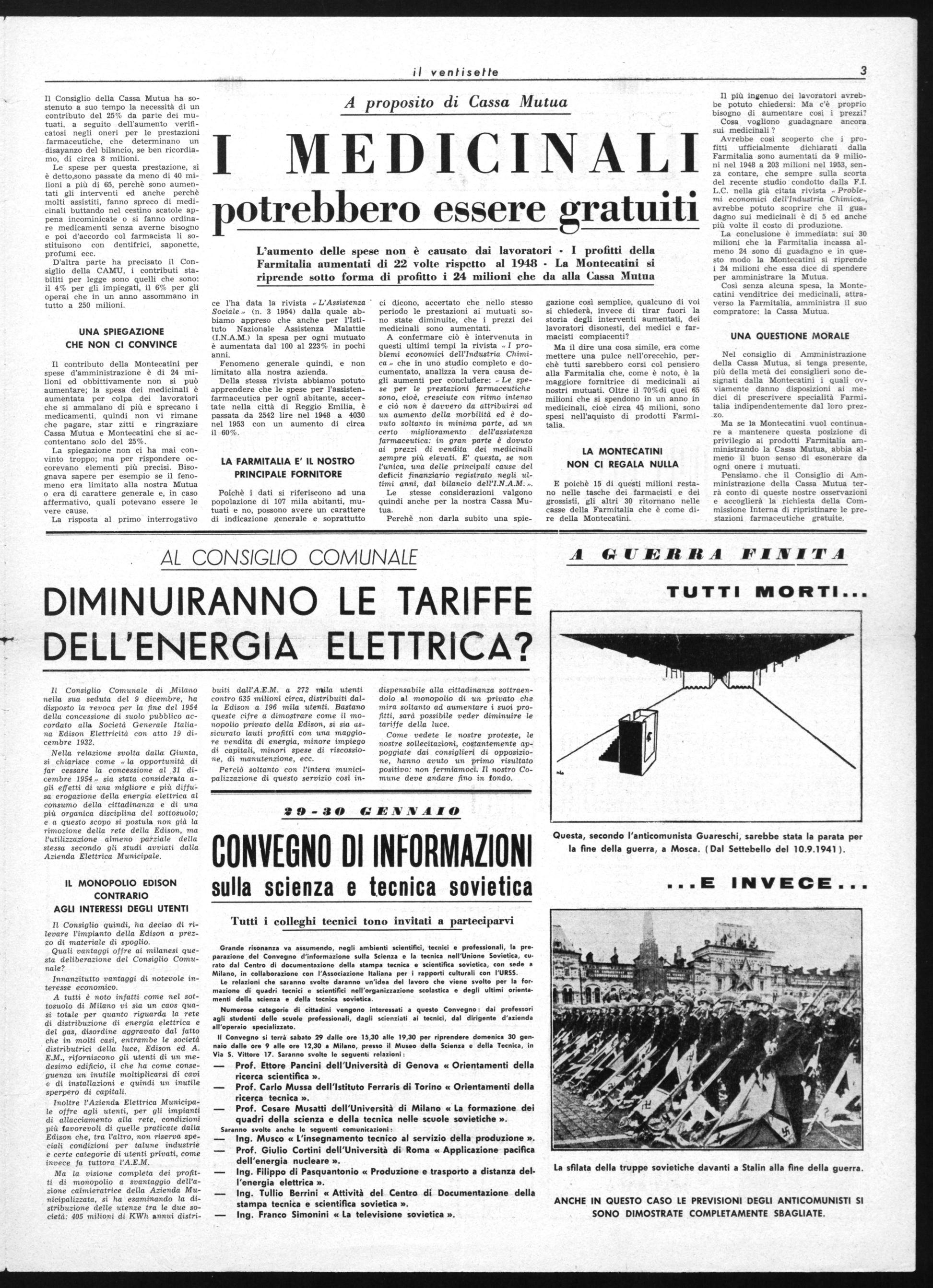 Domenica 30 gennaio, si terrà a Milano un Convegno Nazionale dei lavoratori della Montecatini, al quale, oltre ai dirigenti nazionali di tutti i Sindacati interessati al nostro gruppo, sarà presente la C.G.I.L., probabilmente col suo Segretario generale On.le Giuseppe Di Vittorio. Chimici, minatori, tessili, metallurgici, elettrici, in questo grande Convegno esprimeranno ancora una volta la volontà di battersi per questa giusta, sentita rivendicazione.