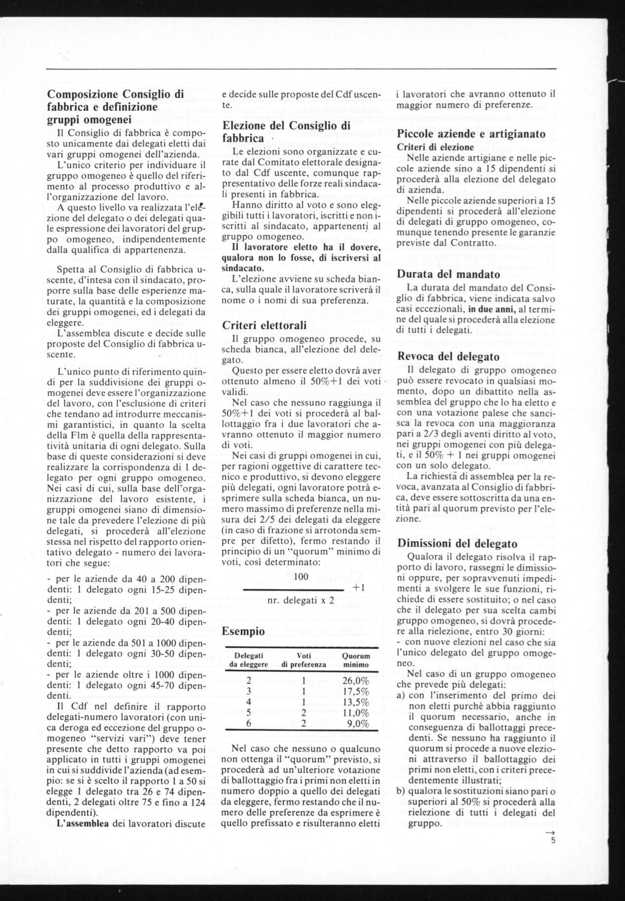 Nelle grandi e medie aziende, il Consiglio di fabbrica (dopo un dibattito politico su proposta unitaria for-, mulata da una apposita commissione elettorale rappresentativa del Cdf) eleggerà con voto palese, nel suo ambito, un Comitato esecutivo con compiti operativi e funzionali, che coordini le attività ed iniziative decise dal Consiglio di fabbrica.