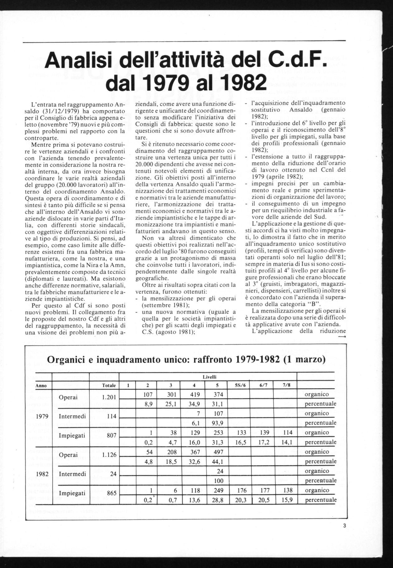 L'entrata nel raggruppamento Ansaldo (31/12/1979) ha comportato per il Consiglio di fabbrica appena eletto (novembre '79) nuovi e più complessi problemi nel rapporto con la controparte.