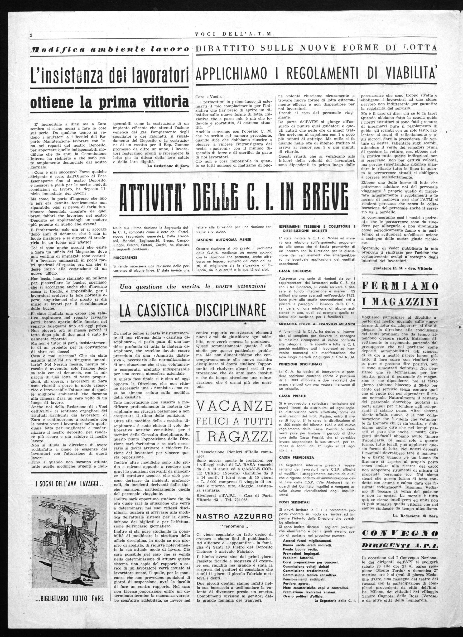 Cosa è mai successo? Che sia stato assunto all'ATM un dirigente umanitario? No! Nessun messia, nessun miracolo è avvenuto; solo l'azione decisa solo con al denuncia, con la minaccia di una lotta di vaste proporzioni, gli operai, i lavoratori di Zara sono riusciti a porre in modo categorico e irrevocabile l'attuazione di quelle migliorie ambientali che daranno alla rimessa Zara un vero volto di un luogo di lavoro.