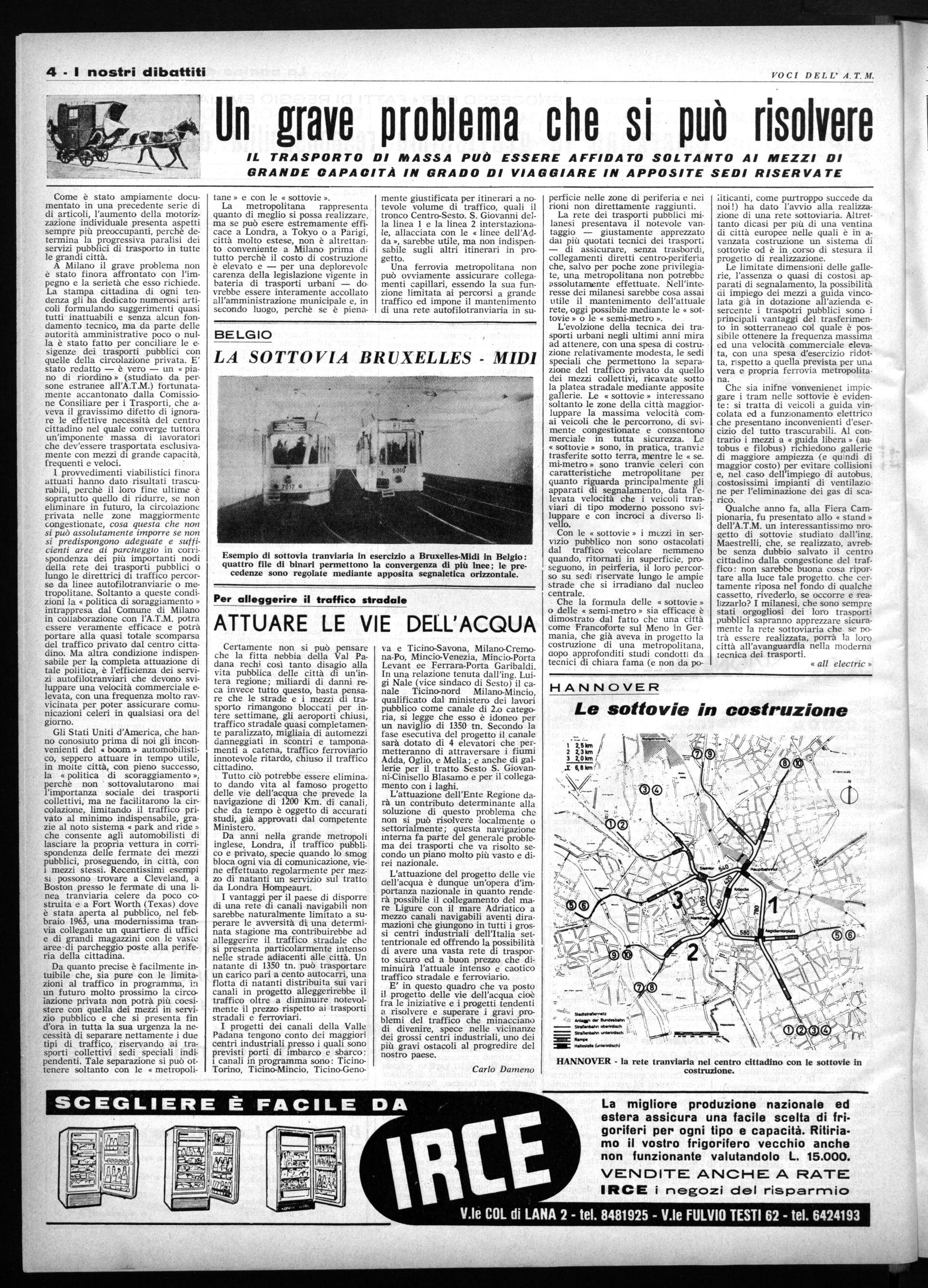 Moltissimi dipendenti dell'A.T.M. non conoscoon certo le conclusioni alle quali è pervenuta la Commissione consiliare per i trasporti pubblici, istituita con delibera dell'undici aprile 1961 e che nelle bozze di stampa pubblicate nel dicembre 1962 a pagina 207 dove si parla de « I