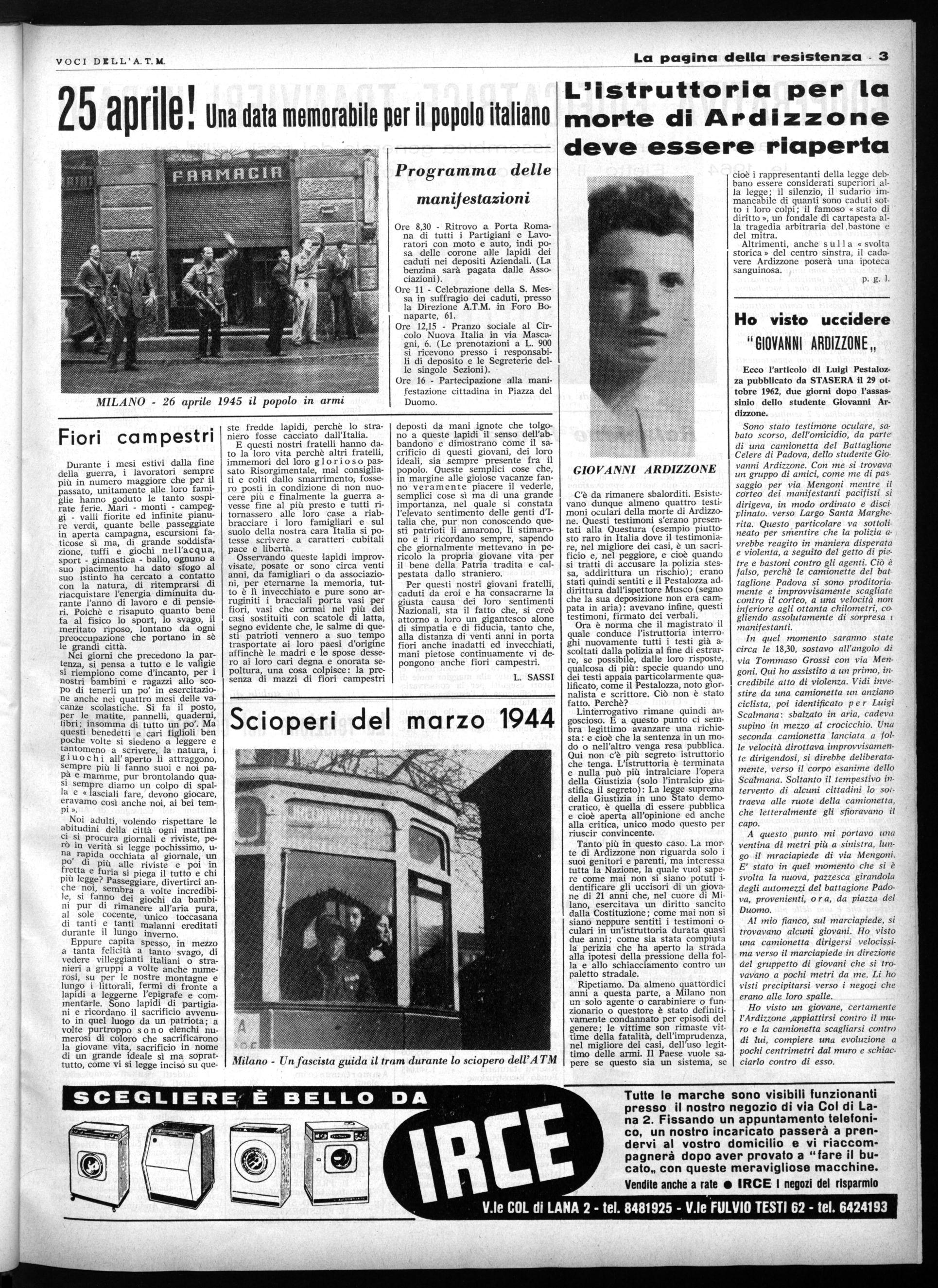 che nelle loro immediate vicinanze passa il pubblico servizio di trasporto. La fattiva ed operante alleanza dei lavoratori e della cittadinanza tutta, è fattore decisivo, determinante per conquistare soluzioni di tipo nuovo ed avanzato per i pubblici servizi di trasporto. All'azione dei lavoratori dell'ATM si accompagni la vostra solidarietà!