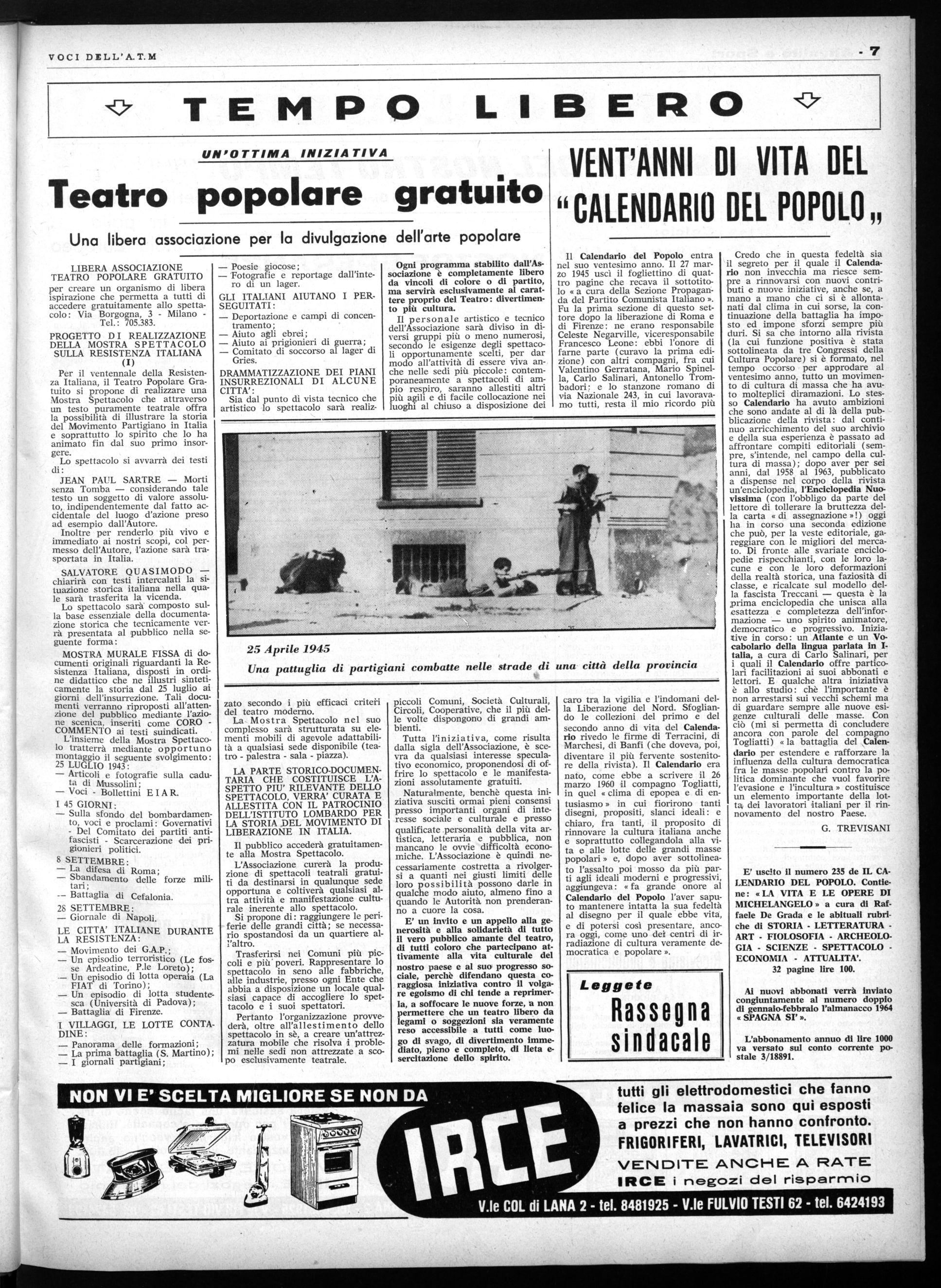E' un invito e un appello alla generosità e alla solidarietà di tutto il vero pubblico amante del teatro, di tutti coloro che partecipano attivamente alla vita culturale del nostro paese e al suo progresso sociale, perchè difendano questa coraggiosa iniziativa contro il volgare egoismo di chi tende a reprimerla, a soffocare le nuove forze, a non permettere che un teatro libero da legami o soggezioni sia veramente reso accessibile a tutti come luogo di svago, di divertimento immediato, pieno e completo, di lieta esercitadone dello spirito.