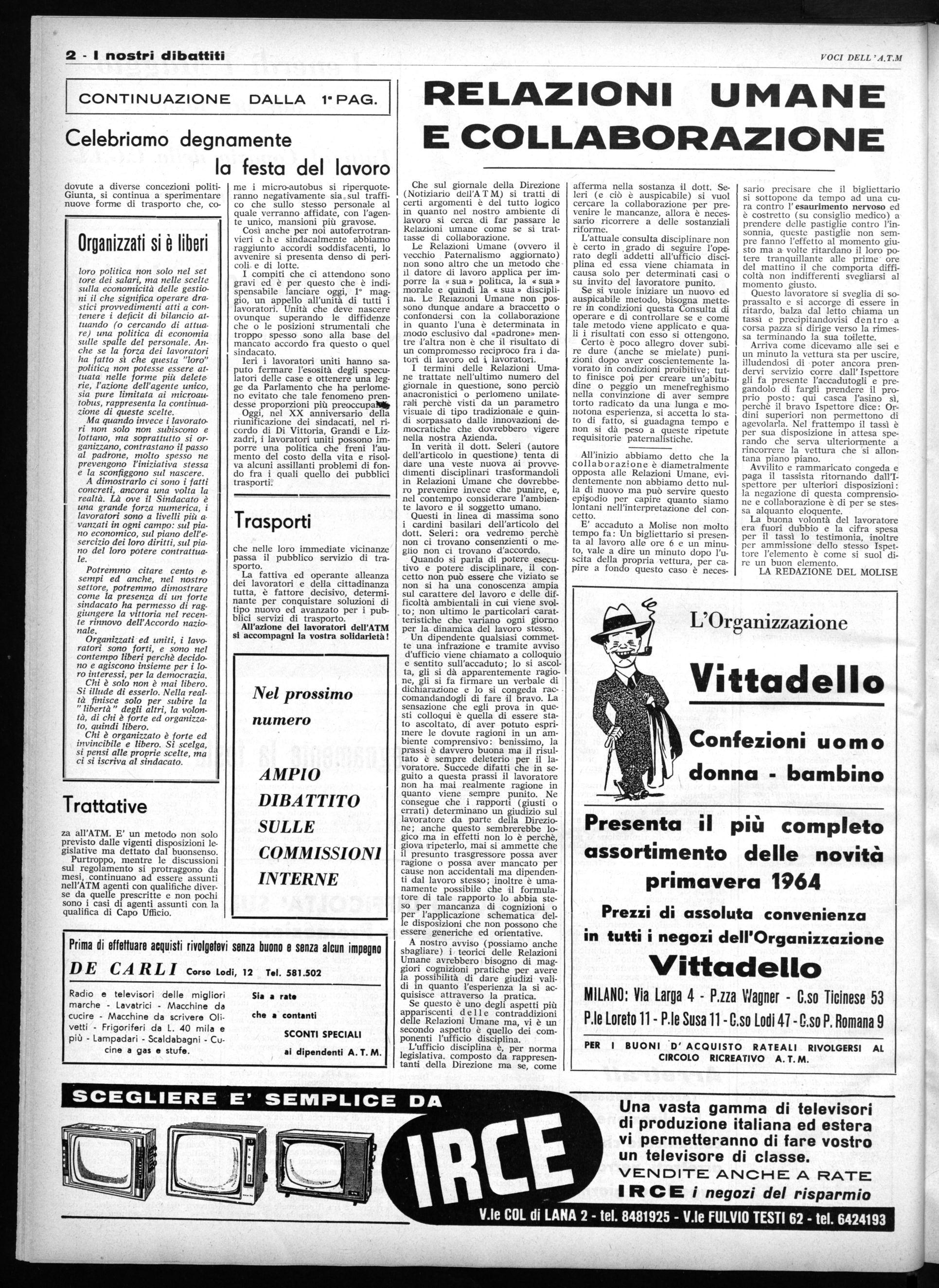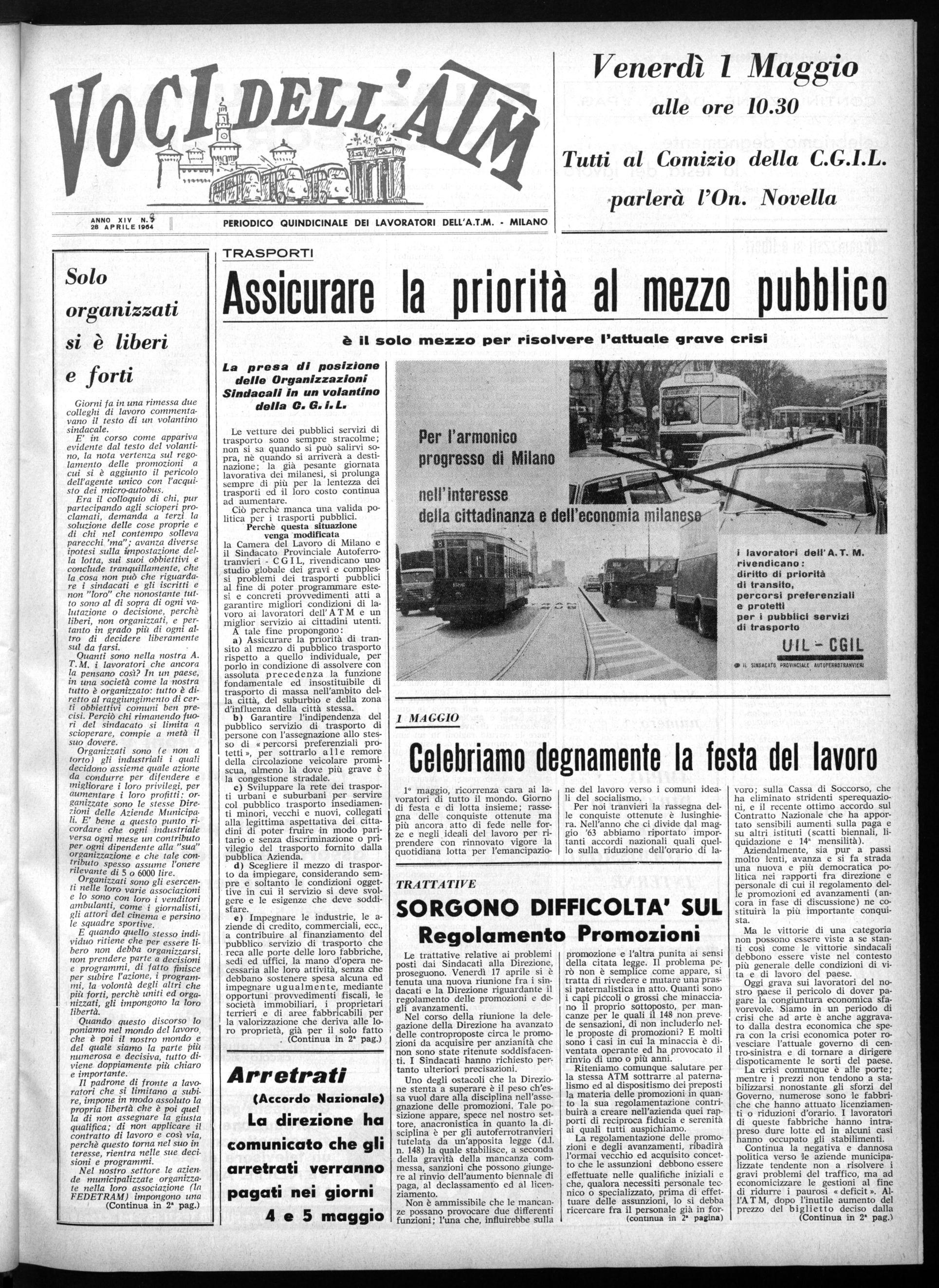 Venerdì l Maggio alle ore 10.30 Tutti al Comizio della C.G.I.L. parlerà l'On. Novella PERIODICO QUINDICINALE DEI LAVORATORI DELL'A.T.M. - MILANO